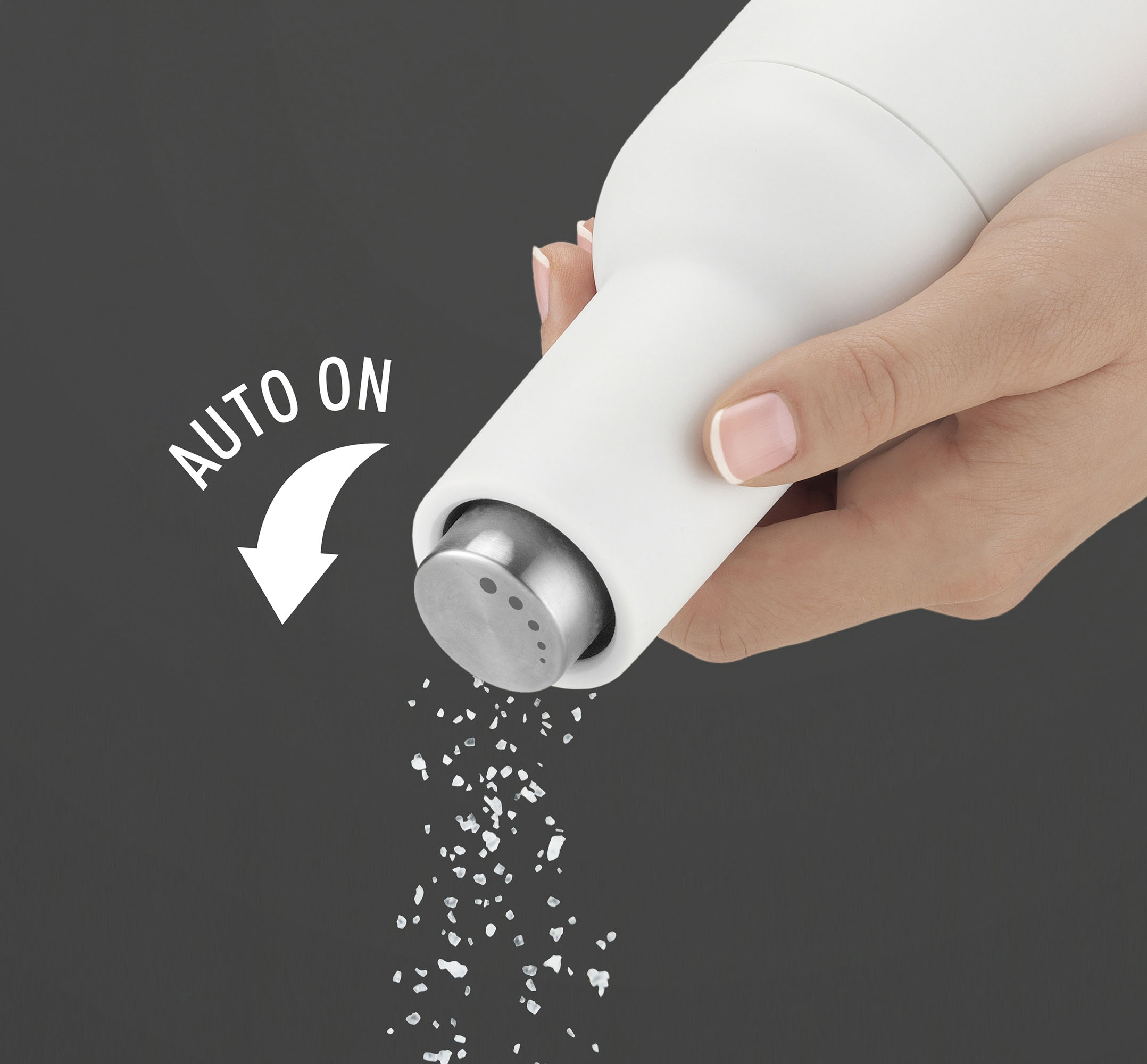 Râșniță electrică pentru sare Trisa Pure Elegance, ceramică, albă, 84 g