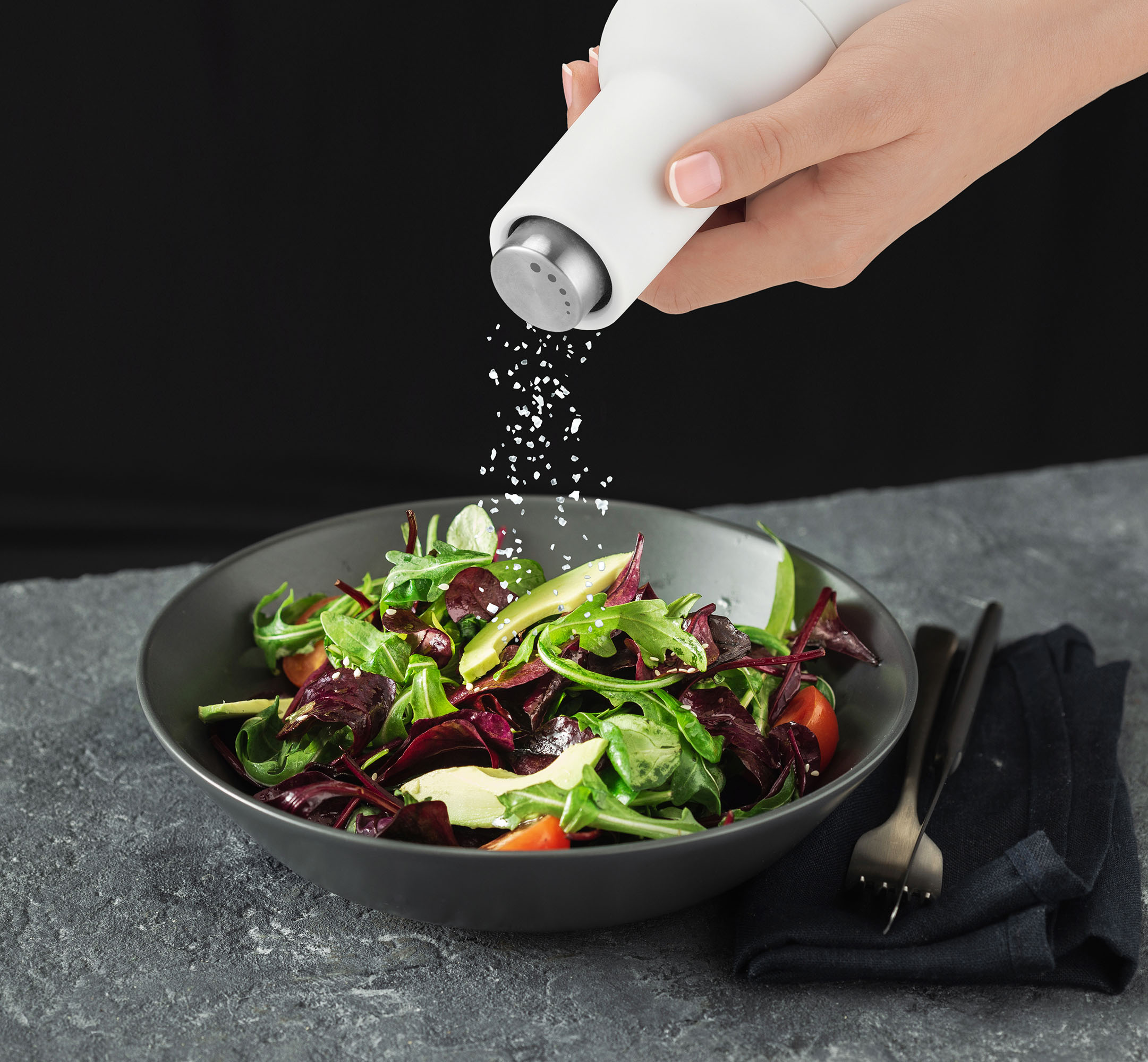 Este potrivită pentru sare grunjoasă și oferă o utilizare simplă, comodă și curată, fiind atât un accesoriu practic, cât și un element decorativ modern.