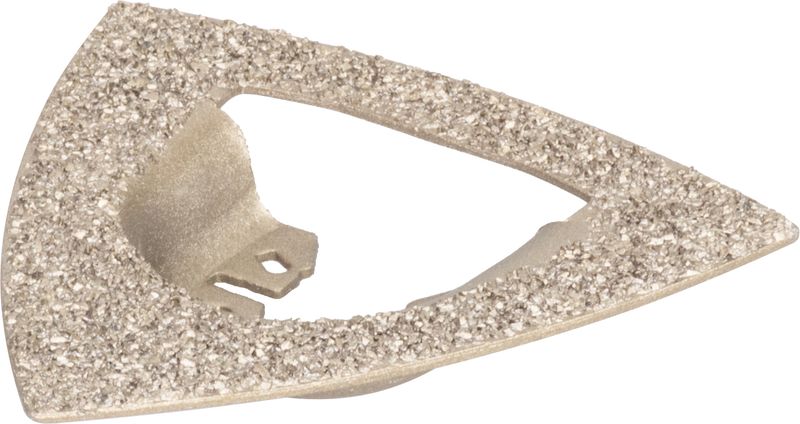 Datorită construcției din carbură și formei triunghiulare, această rașpelă pentru multicutter permite lucru controlat în zone dificile, pe muchii sau în colțuri. Este recomandată pentru prelucrarea materialelor precum cărămidă, zidărie, gresie/faianță și beton.
