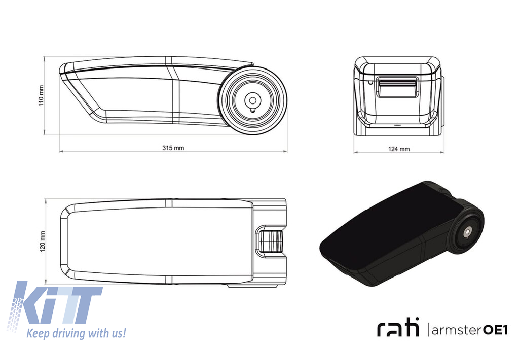 Rati Cotiera model Armster OE1 cu piele eco neagră potrivită pentru Dacia Dokker, Lodgy după 2015; Dacia Logan, Sandero după 2017 cu cotieră de fabrică Performance AutoTuning