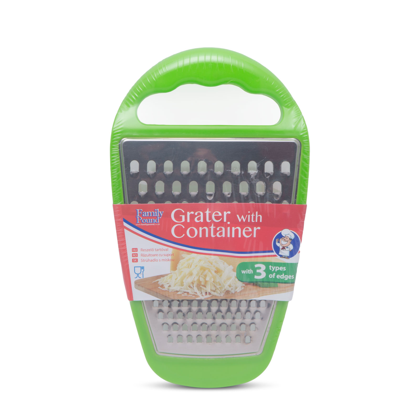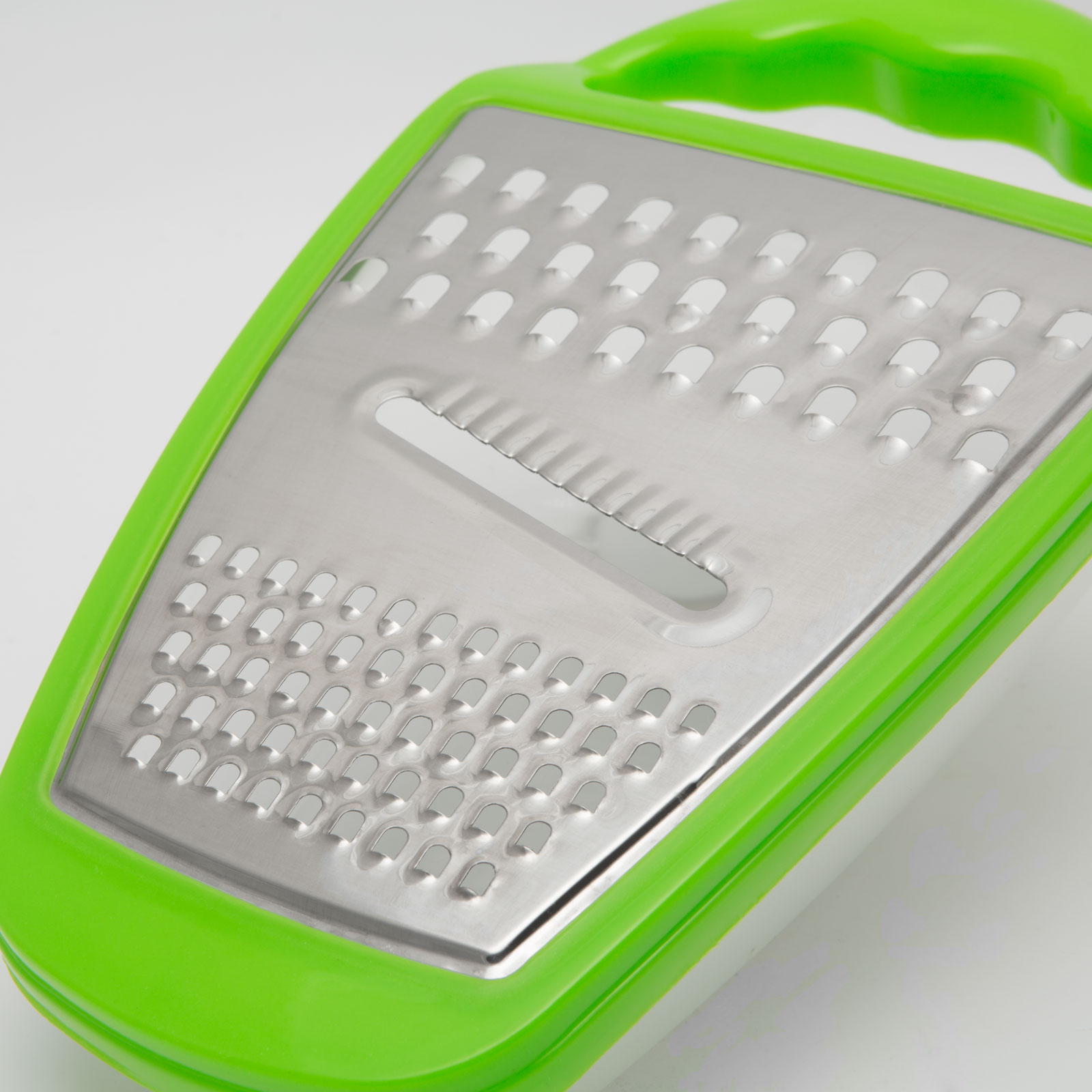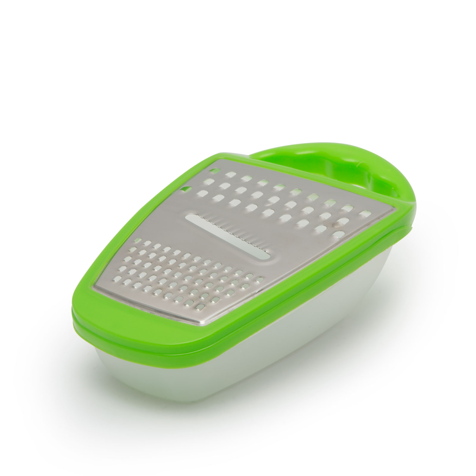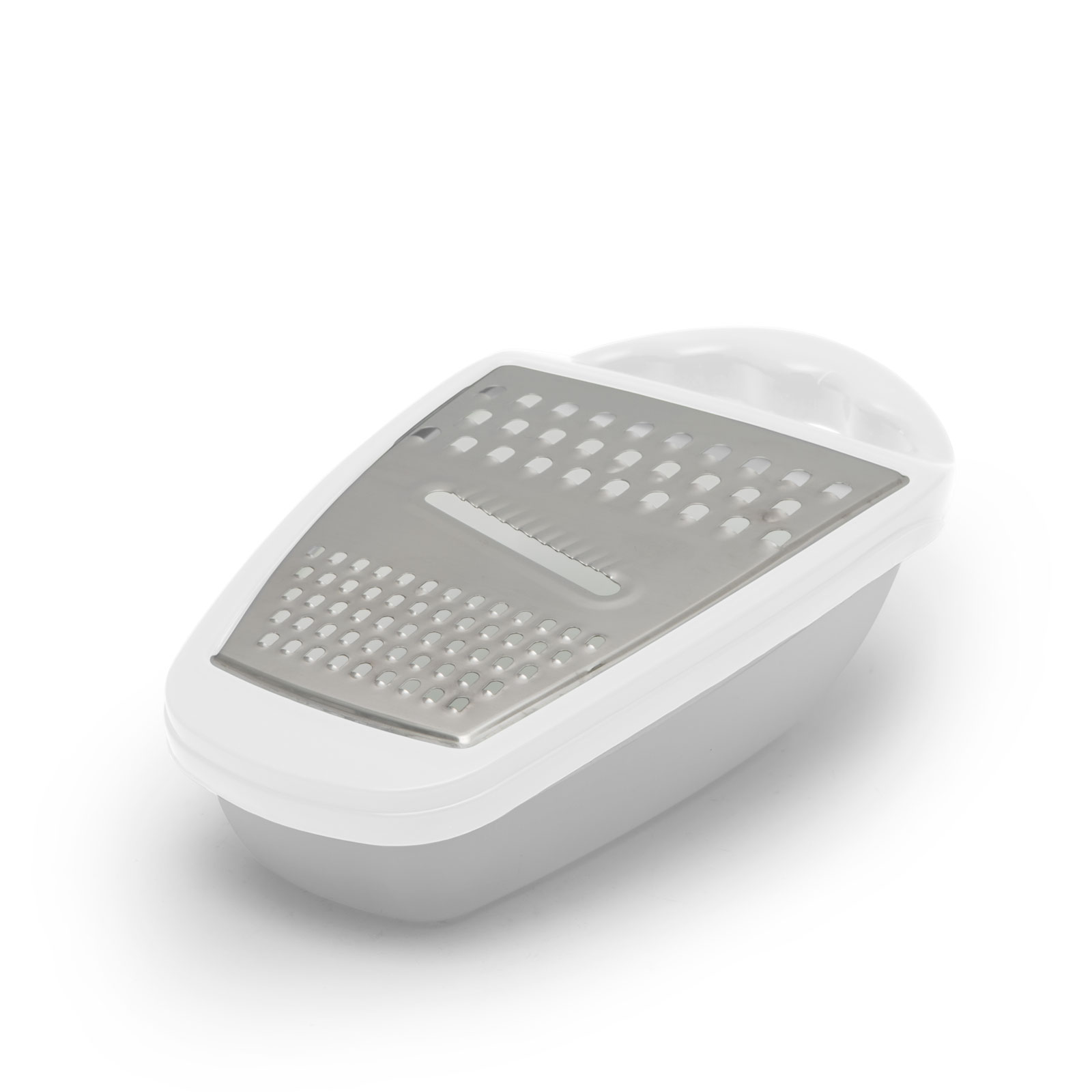 Ideal pt. răzuirea oricăror legume, caşcaval, sau fructe. În vasul de colectare se adună 100% din produsul răzuit. Mânerul ergonomic asigură priză fermă şi comodă, tăişul suprafeţei de răzuire asigurând un lucru foarte eficient. După terminarea lucrului, capacul se îndepărtează dintr-o mişcare.