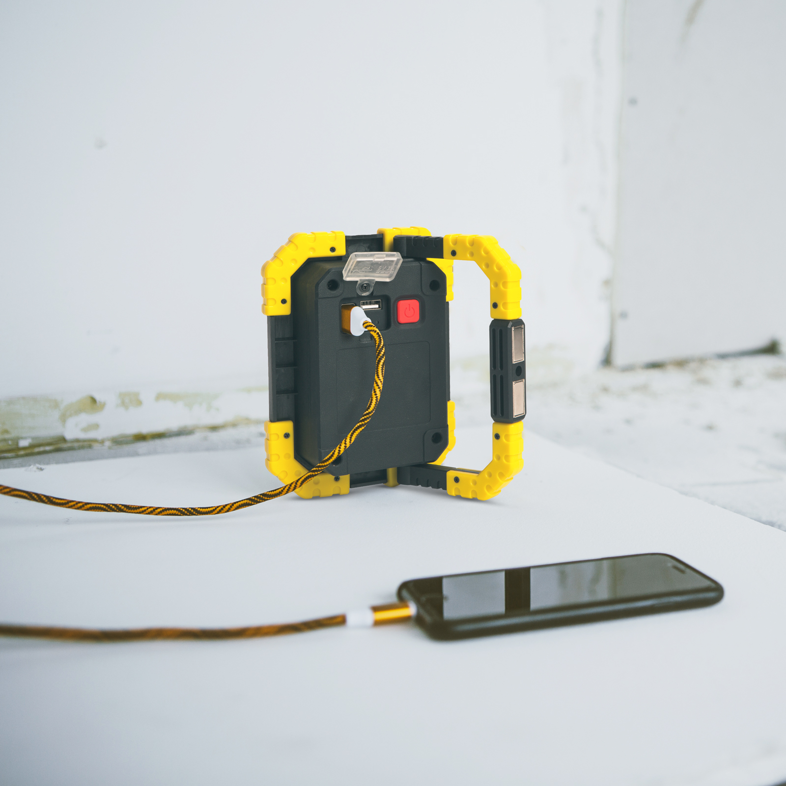 Noul reflector de înaltă calitate din familia Phenom - este un instrument indispensabil pentru ateliere, construcții sau gospodării. LED-ul COB de mare putere de 16 W este capabil să funcționeze până la 6 ore cu o intensitate de 1000 de lumeni. Portul type C de 5V încorporat va oferi suficientă putere pentru a încărca, de exemplu, telefonul mobil.