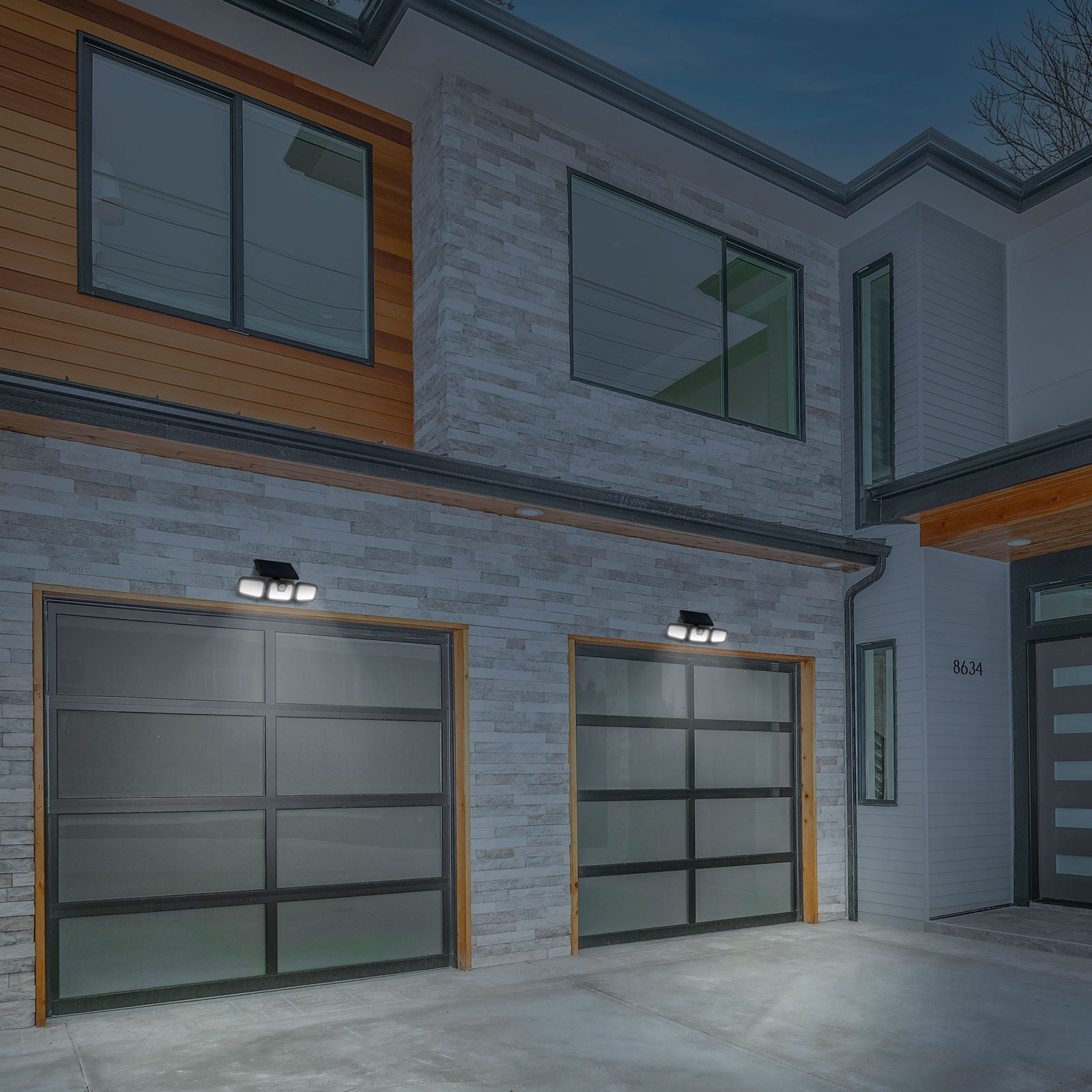 Reflector de perete cu detector de mișcare. Trei LED-uri COB rotative, de înaltă performanță și o unitate solară de capacitate crescută asigură iluminarea.