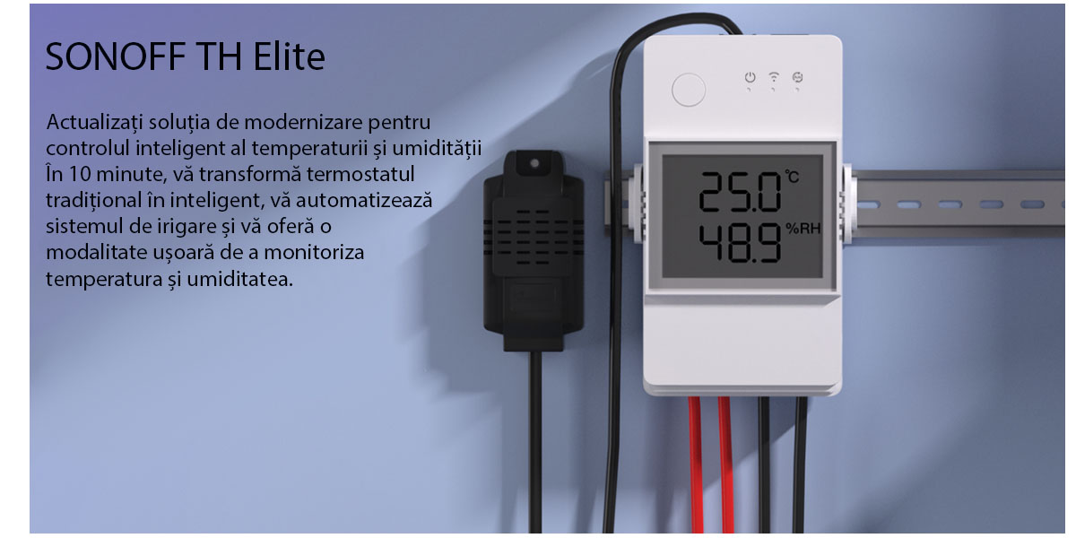 Releu inteligent Wi-Fi Sonoff THR320D, Temperatura & umiditate, Monitor LCD SmartElectro IntelligentHouse