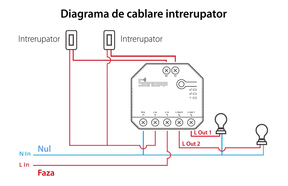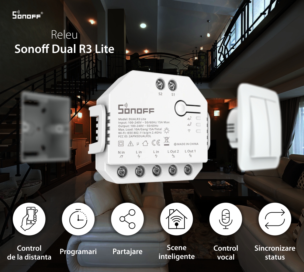 Releu Sonoff Dual R3 Lite cu 2 canale, Programari, Wi-Fi 2.4 GHz SmartElectro IntelligentHouse