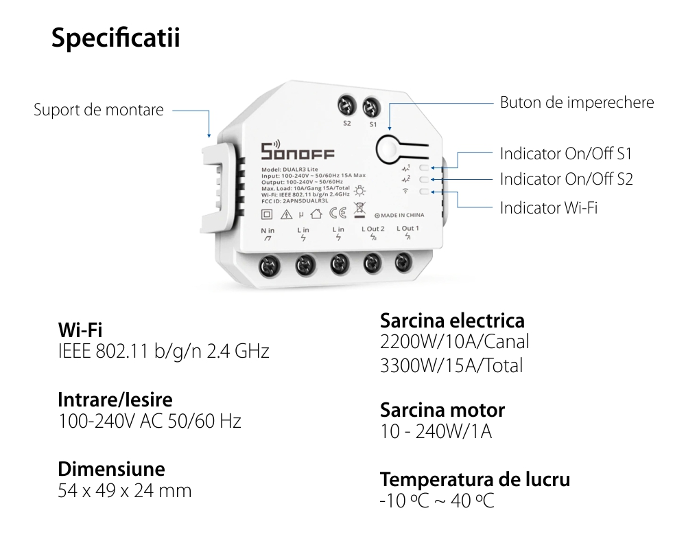 Specificatii Releu Sonoff Dual R3 Lite 2