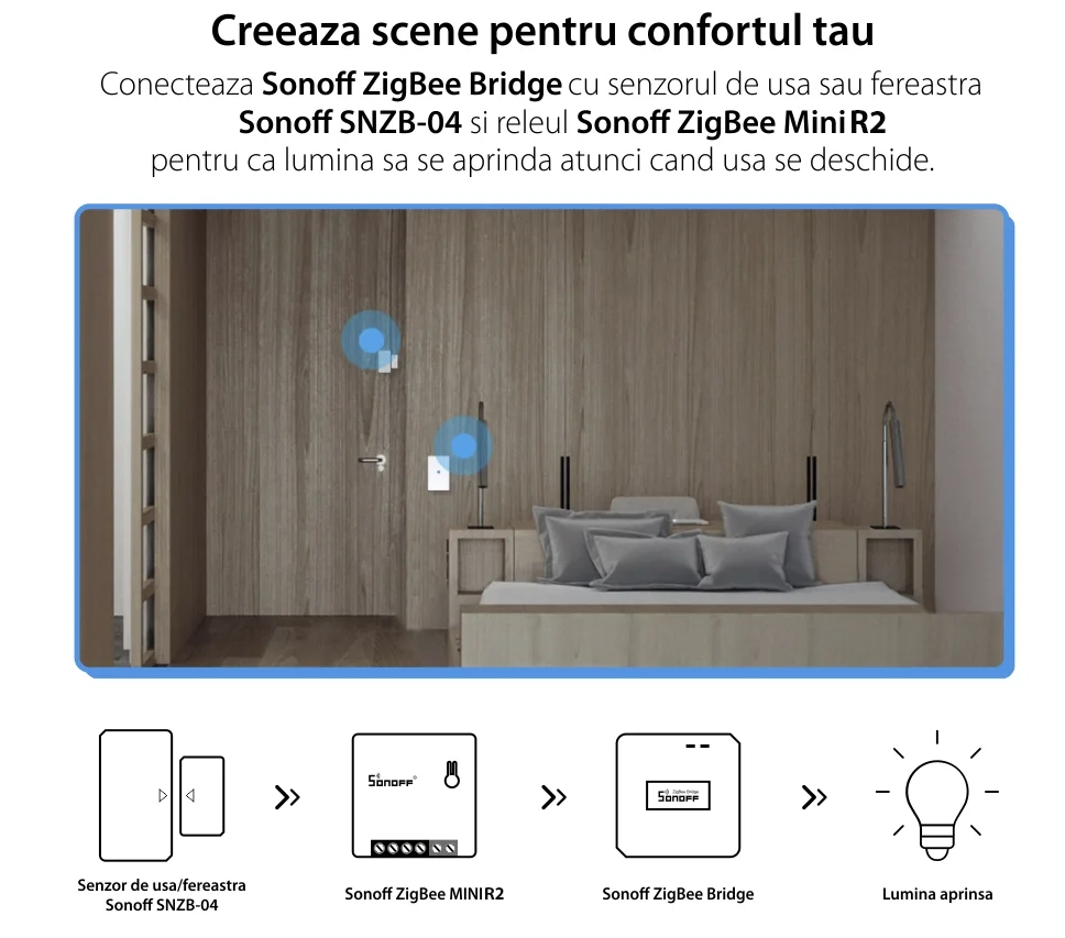 Releu Sonoff ZigBee Mini R2, Programare, Control de la distanta, Protocol ZigBee 3.0 SmartElectro IntelligentHouse