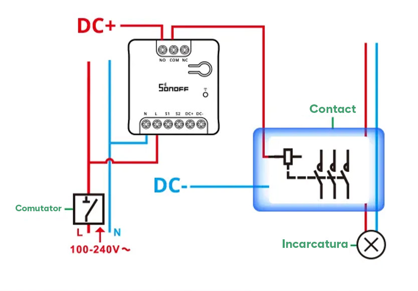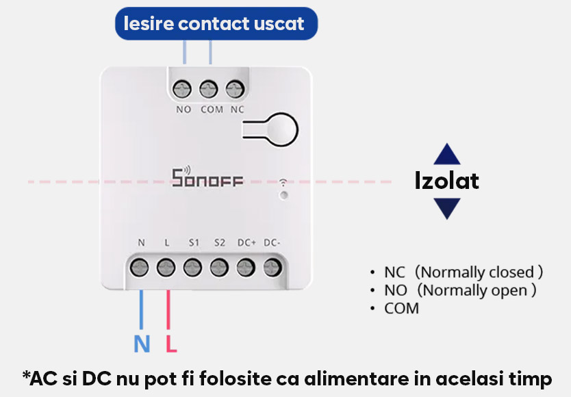 Descriere Releu Wi-Fi Sonoff Mini-D, Contact Uscat