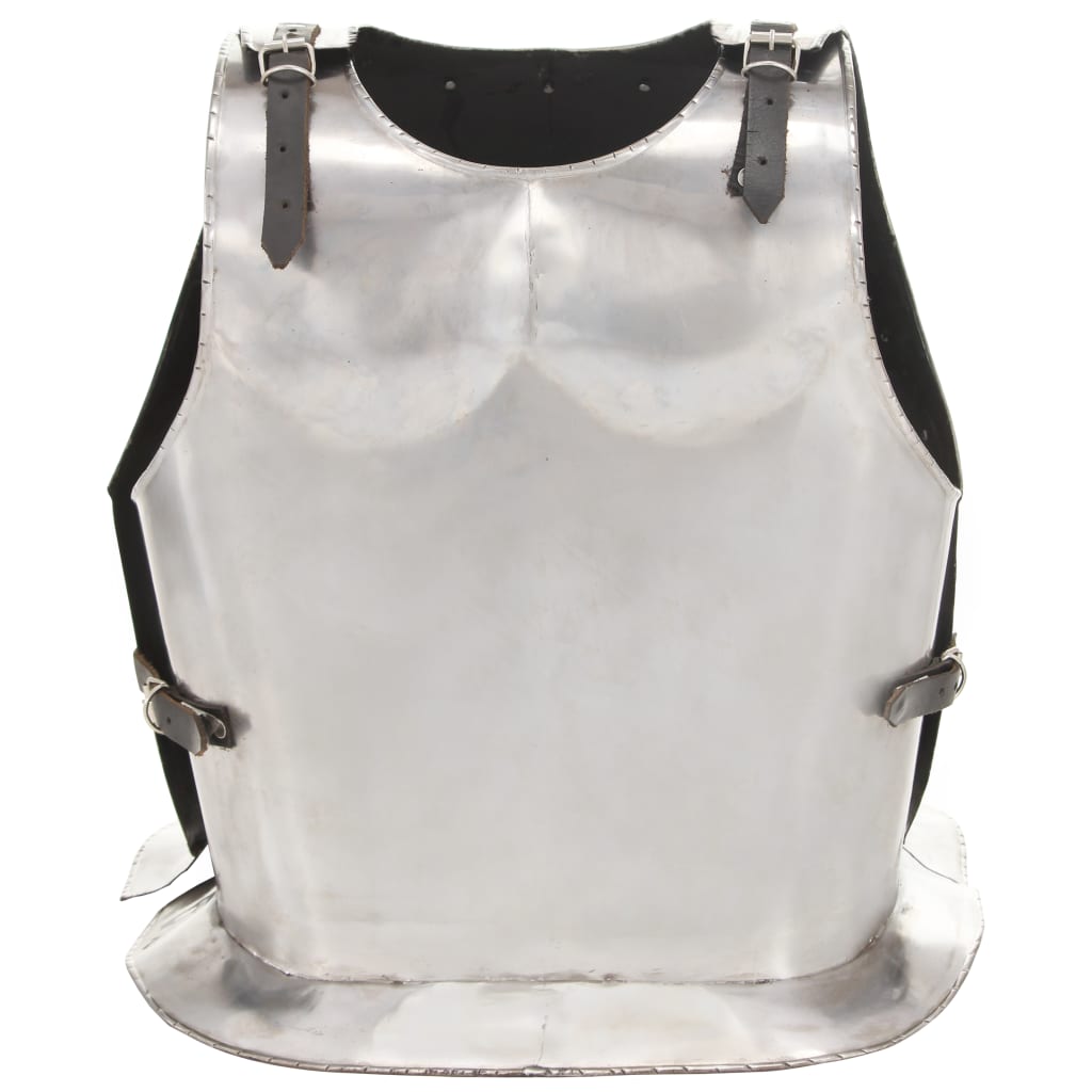 Această armură este o replică exactă a unei armuri medievale originale de cavaler, oferind protecție atât în față, cât și în spate. Se poate purta fără probleme și este echipată cu curele reglabile din piele, pentru o ajustare confortabilă pe corp.