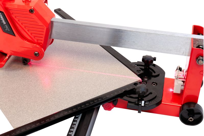Rezač dlažby Strend Pro s laserom je určený na rezanie keramiky, jednostranne glazúrovaných dlaždíc, terakoty a mramoru. Manuálny olejový mazací systém umožňuje podľa potreby premazať pohybový aparát (vhodný olej: minerálny olej do šijacích strojov). Posúvateľný bežec na zaistenie rohu obkladačky pri diagonálnom reze. Červená laserová línia s prepínačom On/OFF (630-670 nm, trieda 2, 2xAA súčasťou balenia). Rezacie koliesko je vyrobené z vysoko kvalitnej zliatiny titánu. Maximálna dĺžka rezu: 1200 mm. Hrúbka rezu: 6-15 mm.