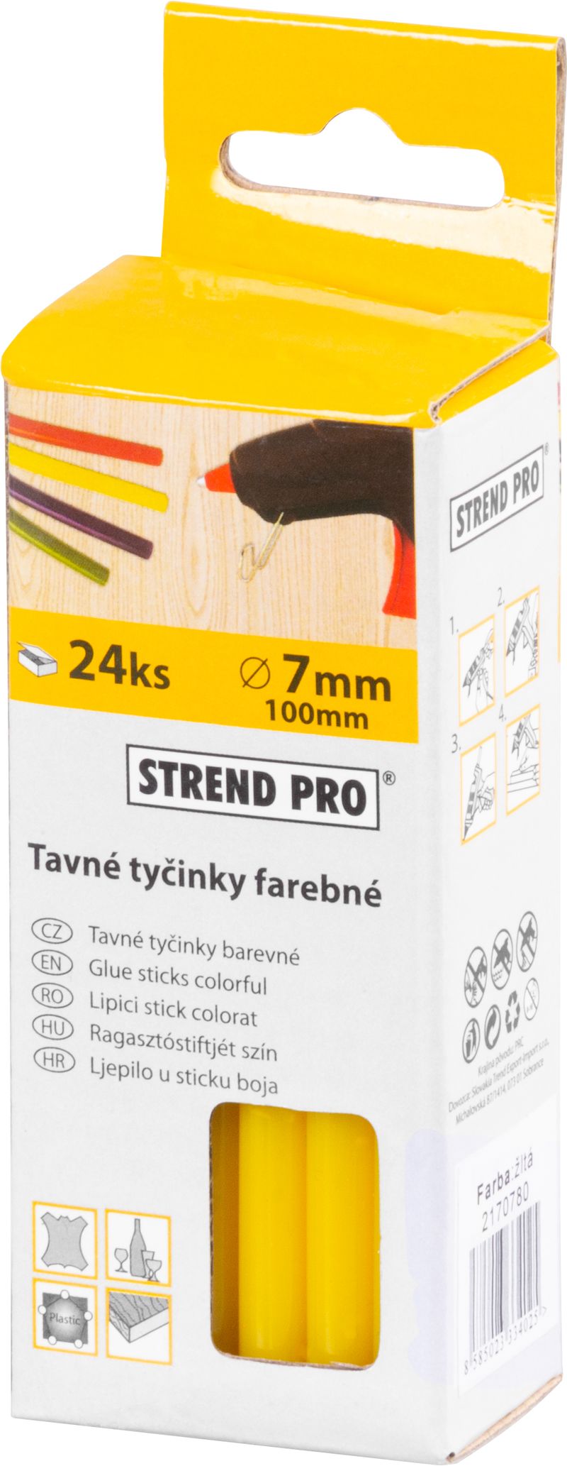 Batoanele de silicon pentru pistol de lipit Strend Pro (7 mm x 100 mm) sunt ideale pentru reparații rapide, hobby, proiecte DIY și uz casnic. Se topesc uniform și ajută la lipirea eficientă a mai multor materiale, precum lemn, hârtie, plastic sau spumă.