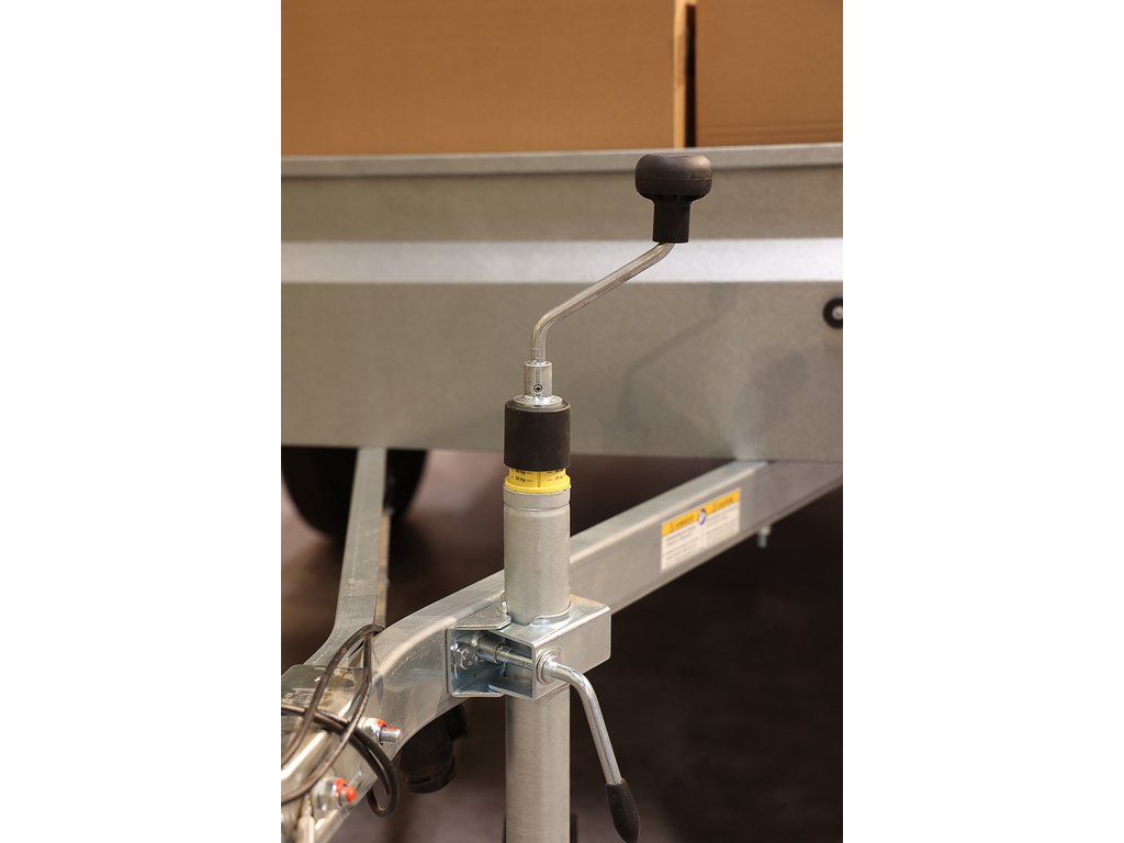- Manivela rotunda din otel pentru ajustarea facila a inaltimii rotii de sprijin