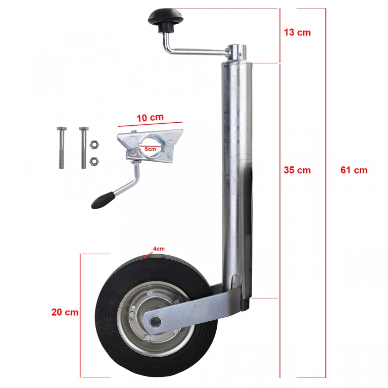 Descriere Roata suport remorcă 150KG Ø48mm inclusiv