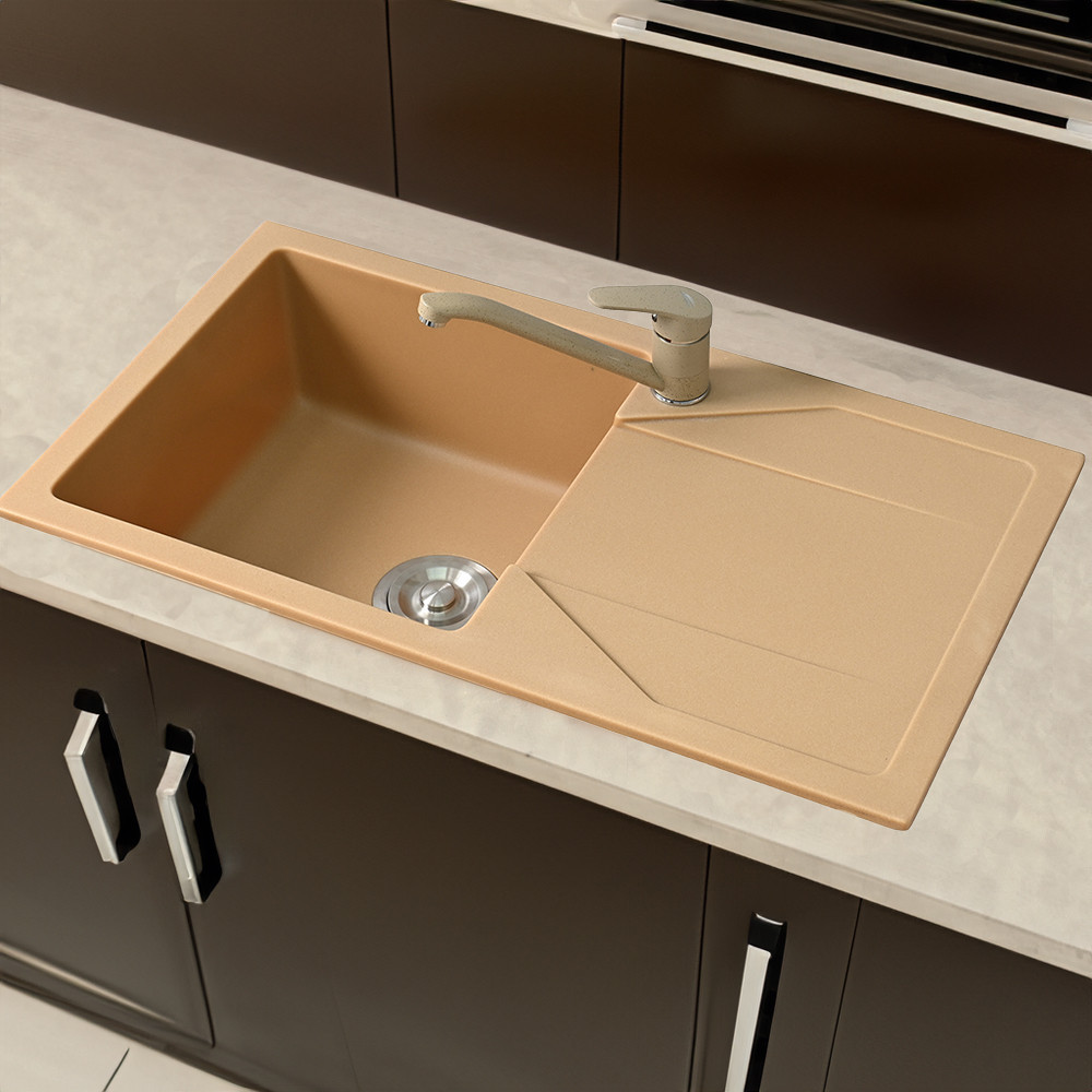 - Culoare bej – aspect cald, potrivit pentru blaturi/chiuvete în tonuri naturale
