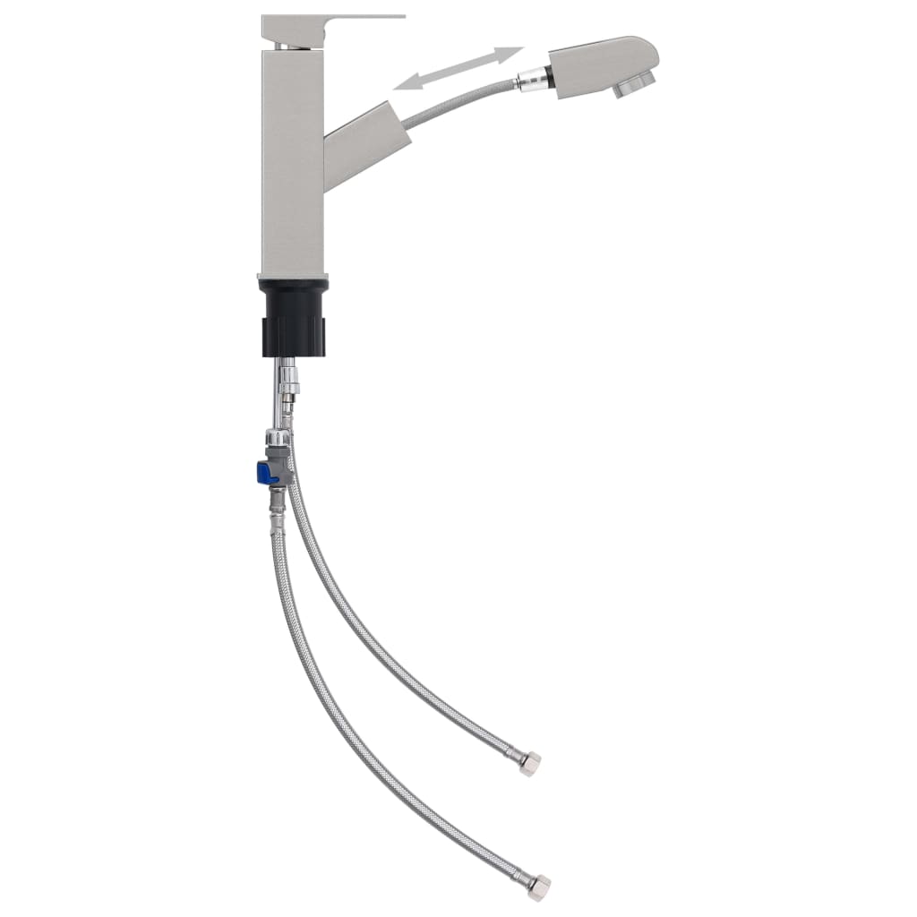 Construcția solidă din alamă și mânerul metalic fac ca robinetul pentru chiuvetă să fie durabil și robust. Acest robinet are un design flexibil din metal al furtunului de conectare, fiind potrivit pentru majoritatea chiuvetelor. Poate fi conectat cu ușurință la majoritatea sistemelor de bază cu presiune, pentru apă caldă și rece. În plus, robinetul are o duză retractabilă din ABS și se poate roti până la 360 de grade, ceea ce este foarte practic.