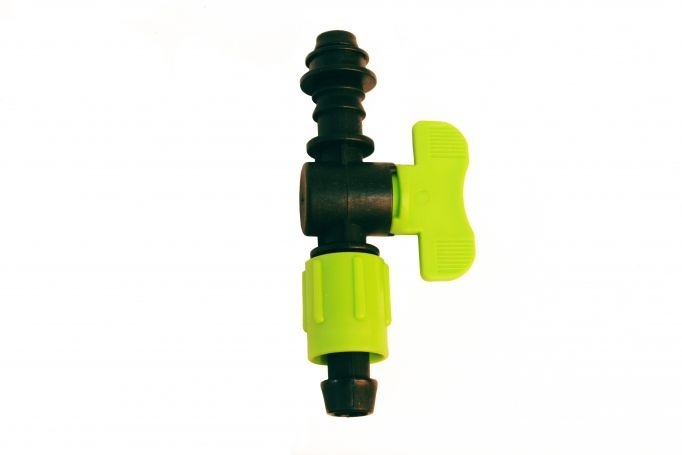 Robinet cu garnitură pentru bandă de picurare Micul Fermier GF-1346 – accesoriul ideal pentru a porni/opri rapid apa și pentru a regla debitul pe o linie de irigare prin picurare.