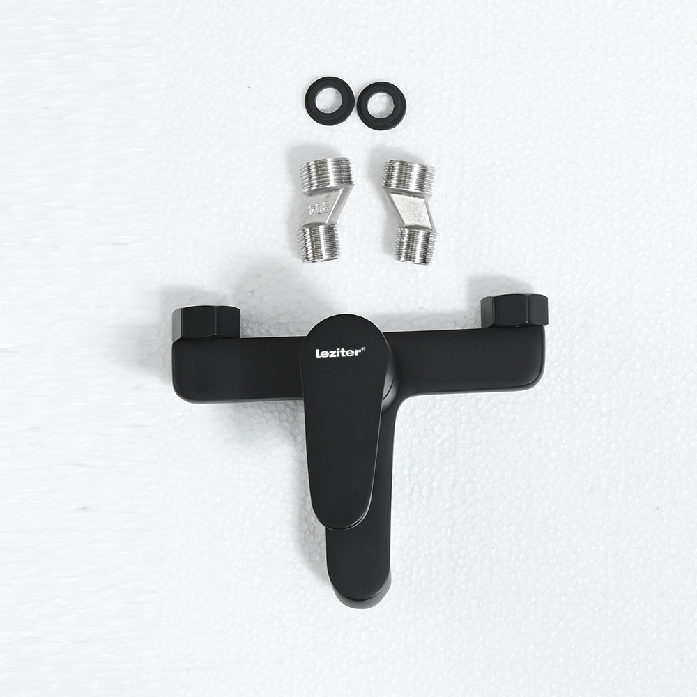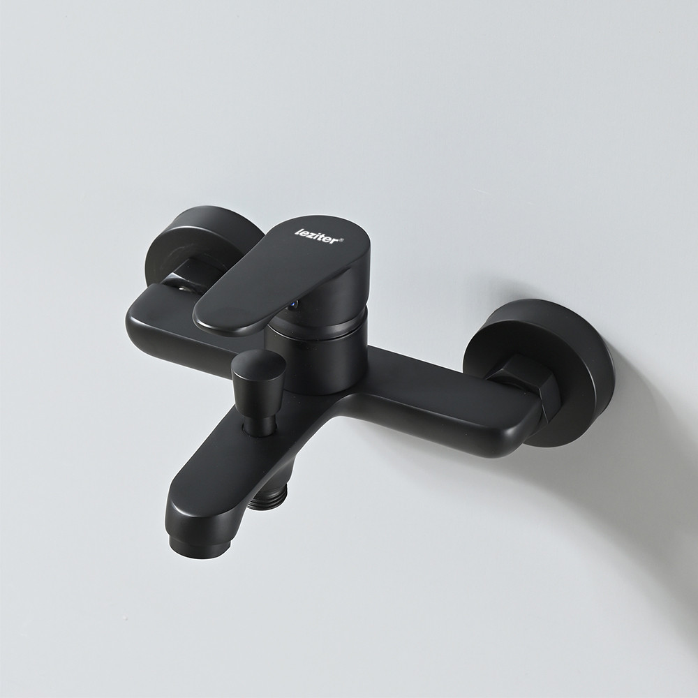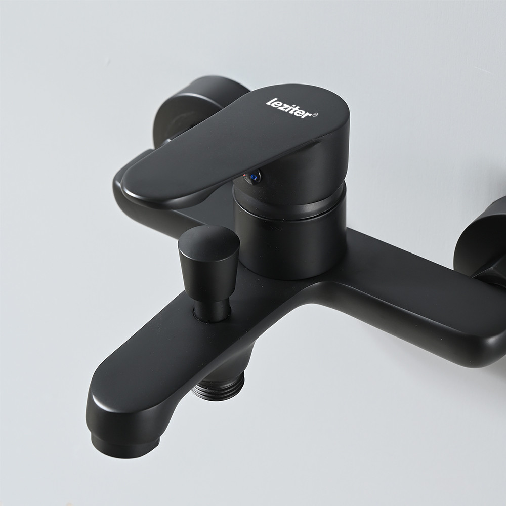 Robinetul de umplere cadă Leziter Colly este alegerea potrivită dacă îți dorești un look modern, cu finisaj negru mat, și o utilizare comodă zi de zi. Construcția din alamă oferă durabilitate, iar mânerele din zinc sunt plăcute la atingere și ușor de manevrat, pentru un control precis al debitului și temperaturii.