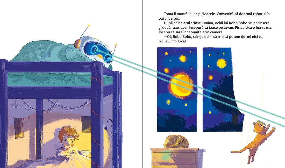 Alege Robo Bobo la culcare dacă vrei o carte pentru copii care combină distracția, lectura interactivă și atmosfera plăcută de dinaintea somnului.