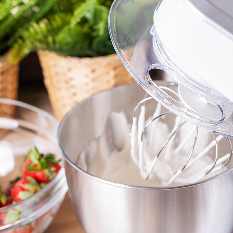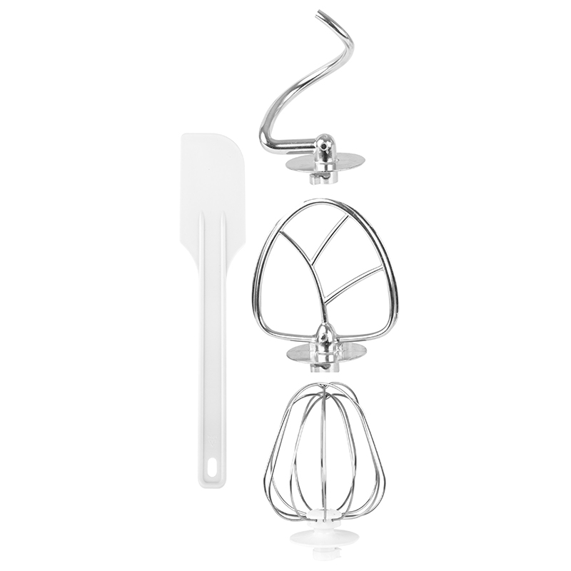 Miscarea planetara de amestecare faciliteaza combinarea precisa a componentelor. De asemenea, va permite sa scoateti in evidenta cele mai bune ingrediente pe care le utilizati. Este miscarea eliptica a agitatoarelor care ajunge in fiecare colt al vasului si amesteca uniform ingredientele uscate si umede. Capacitatea de a seta sase viteze este o modalitate de a alege viteza de amestecare potrivita pentru cantitatea si tipul de ingrediente. Gata cu stratul trist! Un vas mare cu o capacitate de 4 litri, din otel inoxidabil, iti permite sa pregatesti un tort sau mai multe produse de patiserie pentru intalnirile de familie si intalnirile cu prietenii. Trei parti: un carlig pentru framantarea aluatului, un tel pentru amestecare si un tel pentru batut ouale va permit sa pregatiti toate elementele de tort cu un singur dispozitiv!