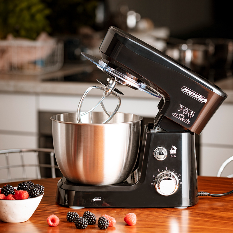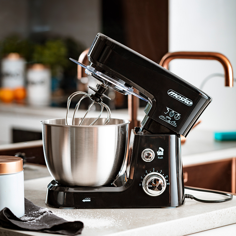 Mixer Mesko MS 4217, Putere 1200 W, Capacitate bol 3,5 Litri Daca sunteti in cautarea unor echipamente de bucatarie care sa va ajute sa pregatiti feluri de mancare similare cu cele ale bucatarilor profesionisti, nu cautati prea departe! Mixerul planetar Mesko MS 4217 este un dispozitiv care va va schimba stilul de gatit pentru totdeauna. Multifunctional, elegant si realizat din materiale de inalta calitate, acesta va fi un plus esential pentru echipamentul de bucatarie. Miscarea complexa de amestecare 6 viteze Cap de inclinare Castron mare din otel inoxidabil de 3,5 litri Capac de stropire Carlig de framantare; tel pentru amestecare Ventuze stabile Putere maxima 1200 W 220-240V ~ 50 / 60Hz