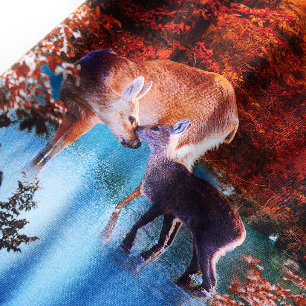 Această rochie pentru copii are mâneci scurte, decolteu rotund și se închide cu nasture la gât. Această rochie pentru copii, de culoare bleumarin, are un imprimeu minunat cu o căprioară. Rochia scurtă pentru copii este confecționată dintr-un material moale care include bumbac și elastan, pentru confort și respirabilitate.