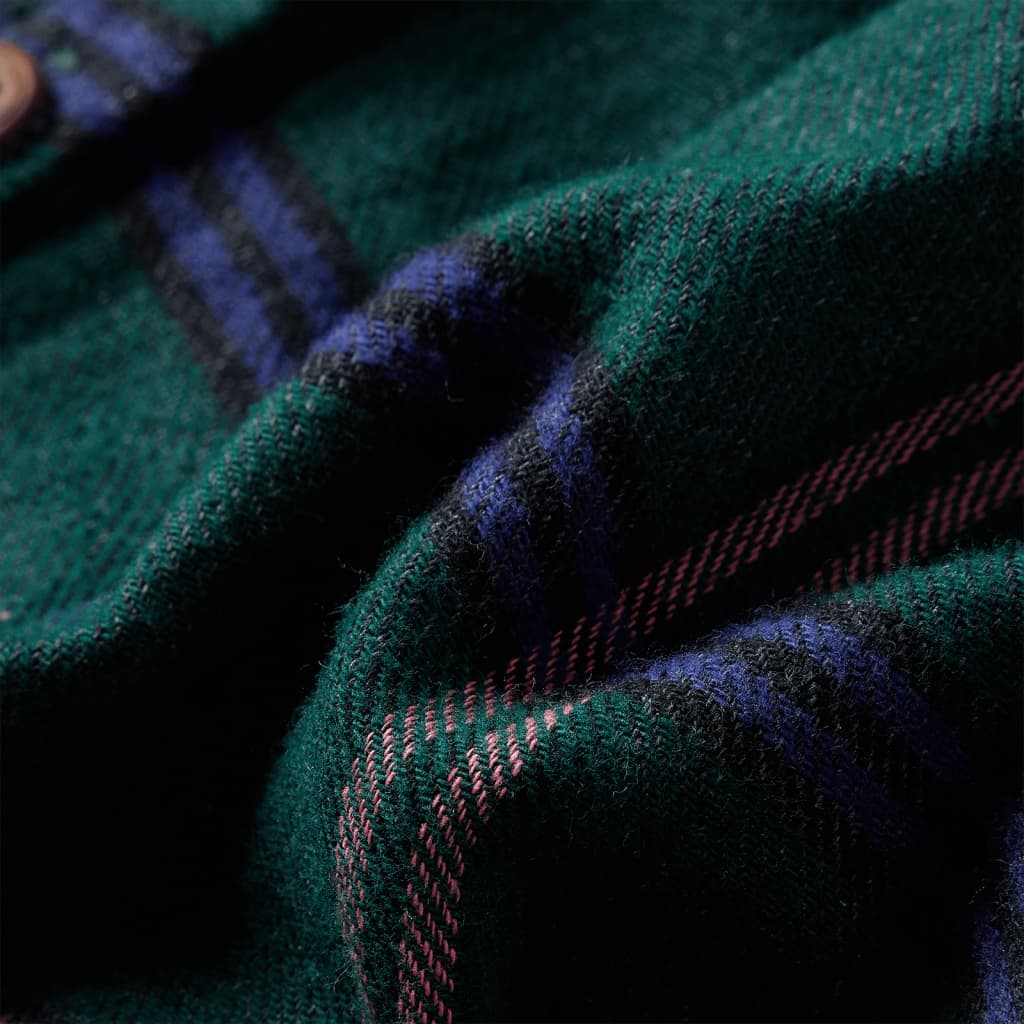 Această rochie pentru copii are mâneci lungi, guler întors, manșete elastice și se închide cu nasturi în față. Volanele frumoase și modelul în carouri fac rochia să arate elegantă și atractivă. Rochia pentru copii este confecționată din bumbac 100% pentru confort și respirabilitate.