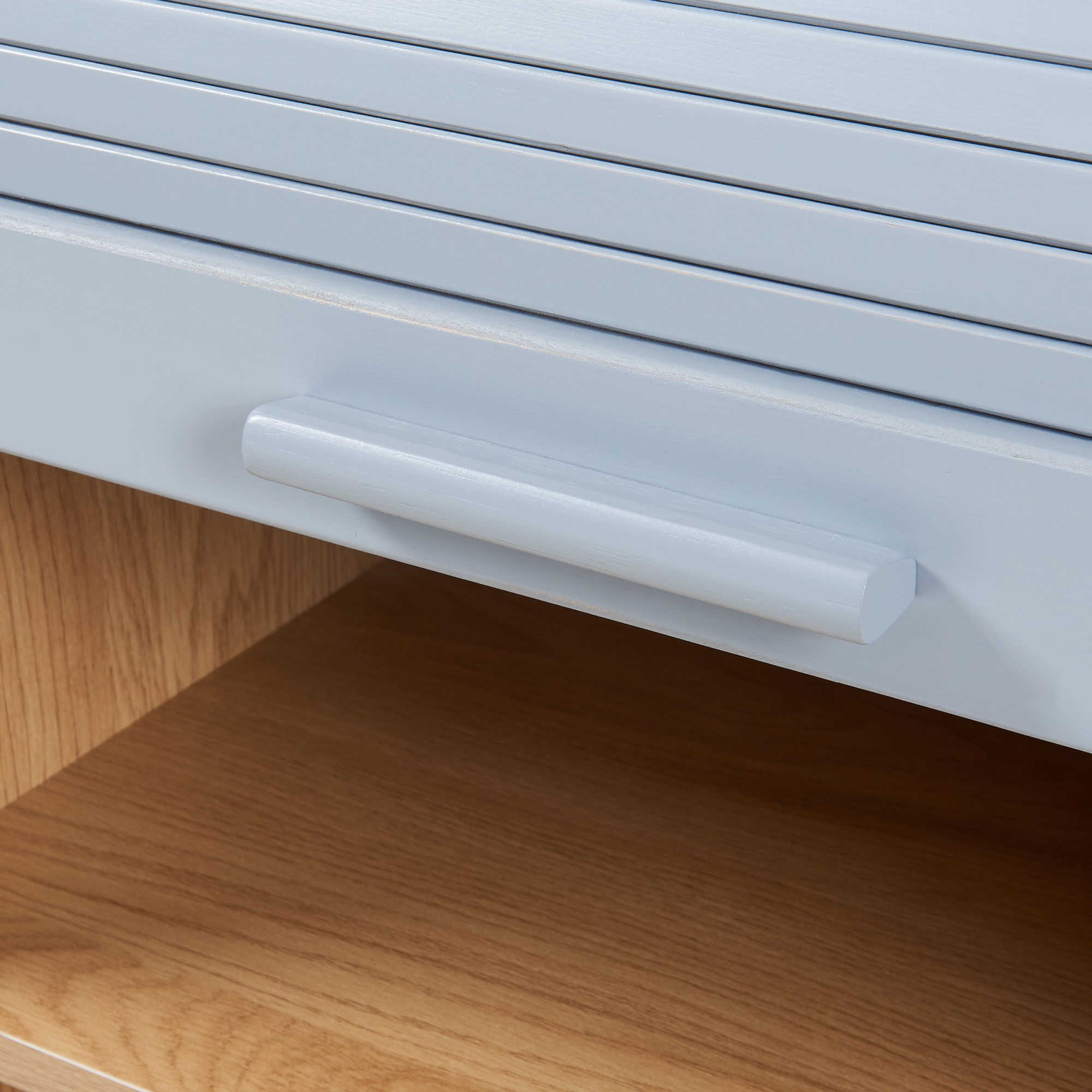 Die leichtgängige Jalousietür lässt sich mühelos nach oben schieben, ohne zusätzlichen Platz zu beanspruchen. Dadurch ist der Schrank auch in kleinen Zimmern oder schmalen Ecken problemlos nutzbar.