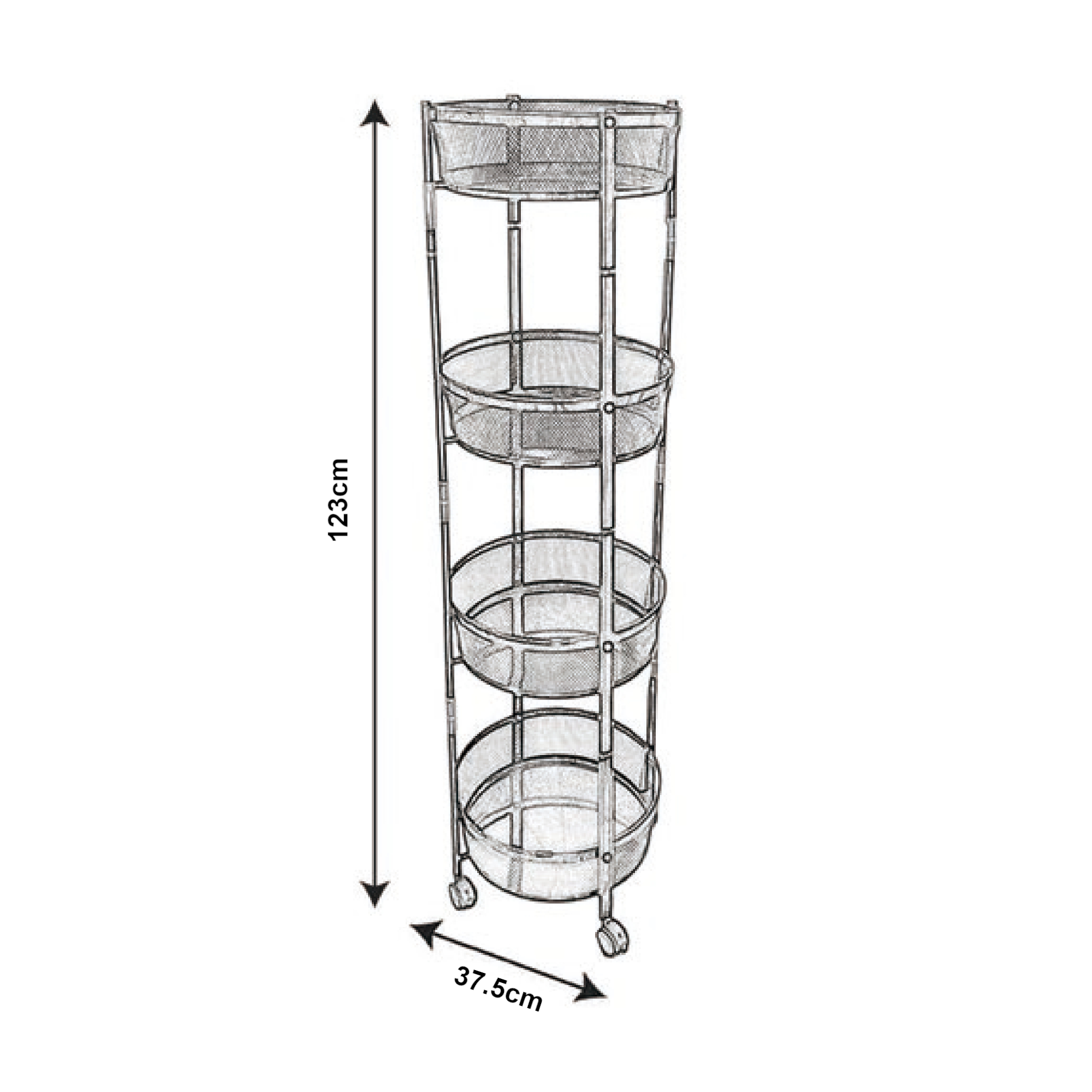 Die vier runden Ablagekörbe bieten ausreichend Platz für Geschirr, Getränke, Snacks oder andere Gegenstände, die Sie griffbereit haben möchten.
