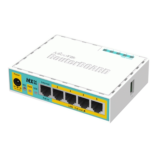 Router MikroTik hEX PoE Lite cu 5 porturi Fast Ethernet si 4 PoE