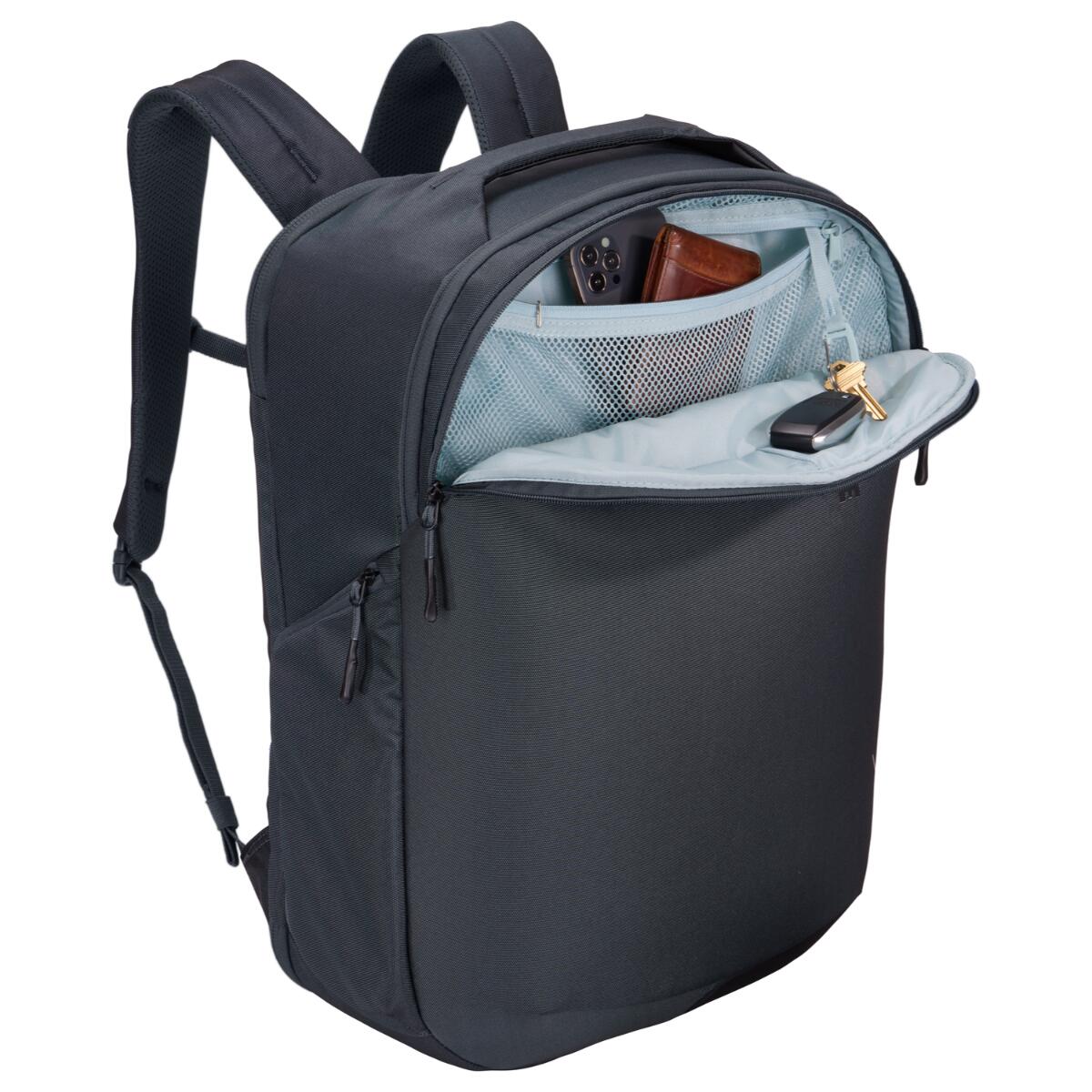 Acest rucsac urban Thule este ideal pentru calatorii scurte, naveta, city break, deplasari de serviciu sau transportul zilnic al echipamentelor personale. Buzunarul lateral cu fermoar este util pentru sticla de apa sau umbrela, iar buzunarul de siguranta din spate pastreaza in siguranta pasaportul, portofelul si alte obiecte importante.