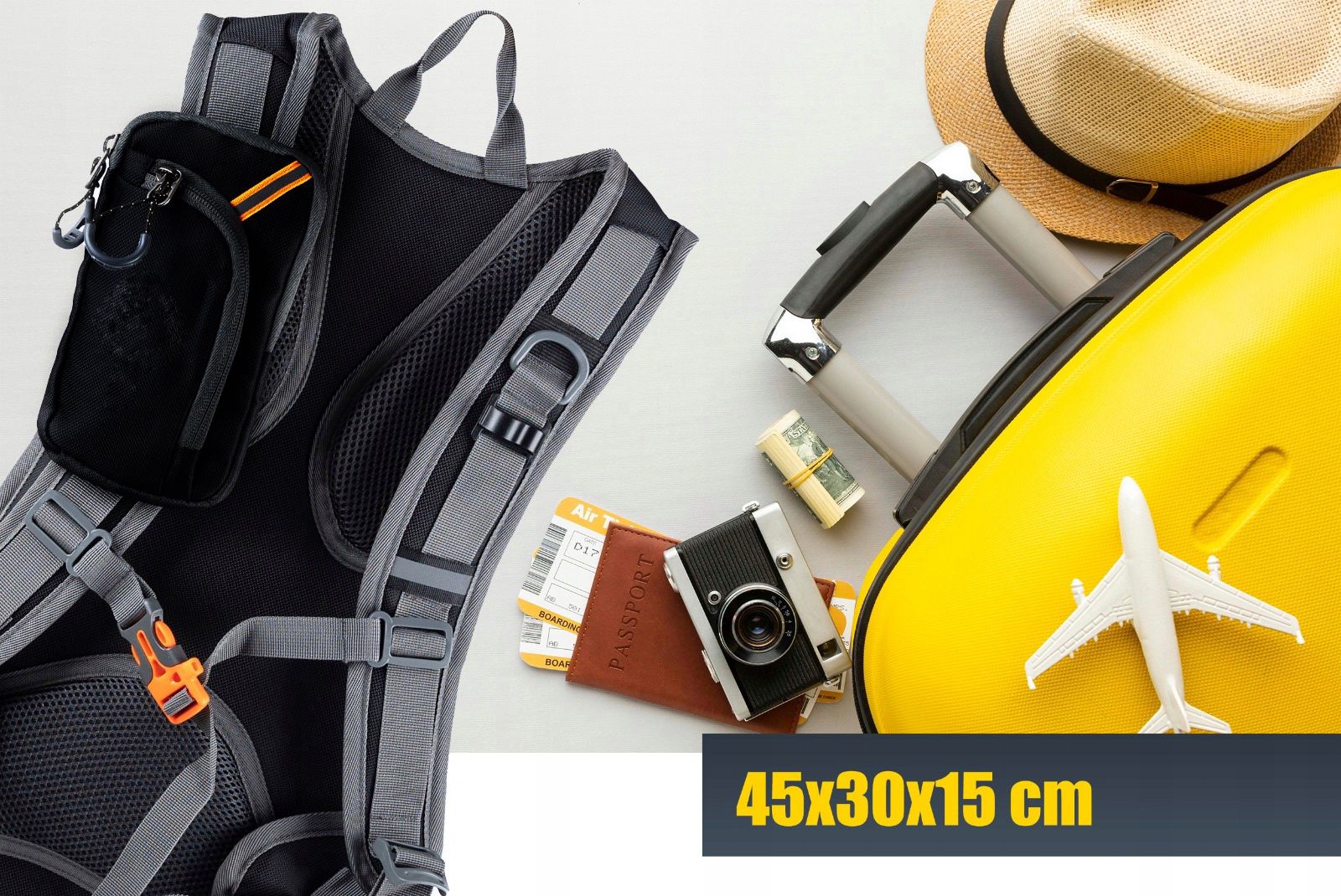Rucsac de drumetie, gri cu elemente reflectorizante, 18litri, 45x30x15cm Household NewTrend