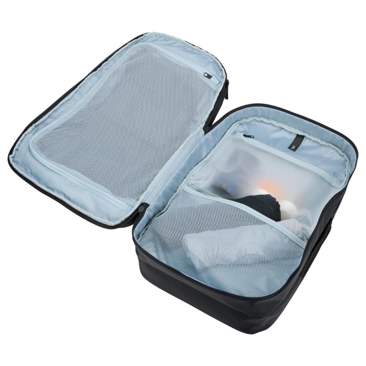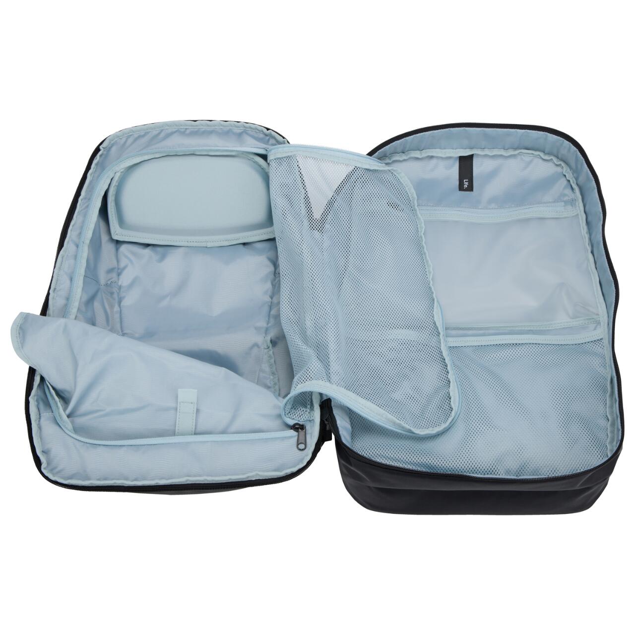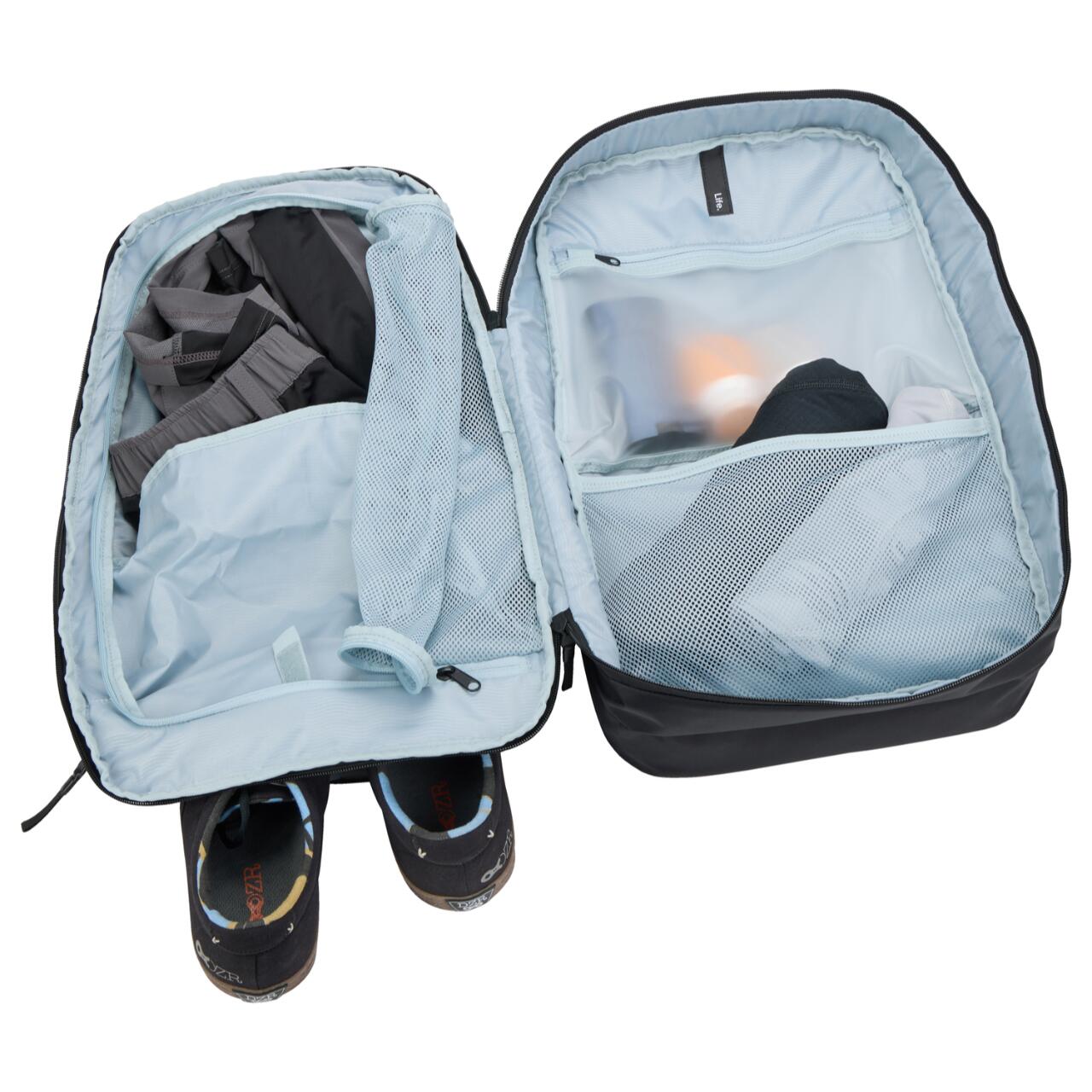 Cu mai multe compartimente si un sistem intuitiv de depozitare, acest rucsac face organizarea una fara efort. Buzunarele captusite pentru laptop si tableta iti protejeaza dispozitivele, iar buzunarul rigid SafeZone protejeaza obiectele fragile precum ochelarii de soare sau smartphone-ul. Un compartiment ventilat pentru incaltaminte pastreaza articolele murdare separate, iar un compartiment din TPU rezistent la apa ofera protectie suplimentara pentru echipamentele sensibile.