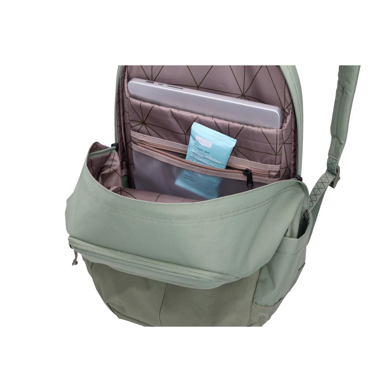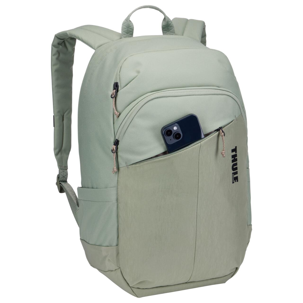 Acest rucsac Thule este realizat din poliester 600D 100% reciclat si nailon 400D certificat Bluesign®, fiind o alegere potrivita daca iti doresti un produs rezistent si realizat responsabil. Baza captusita si fermoarele YKK contribuie la durabilitate, iar buzunarele laterale sunt utile pentru sticla de apa, cabluri sau alte accesorii.