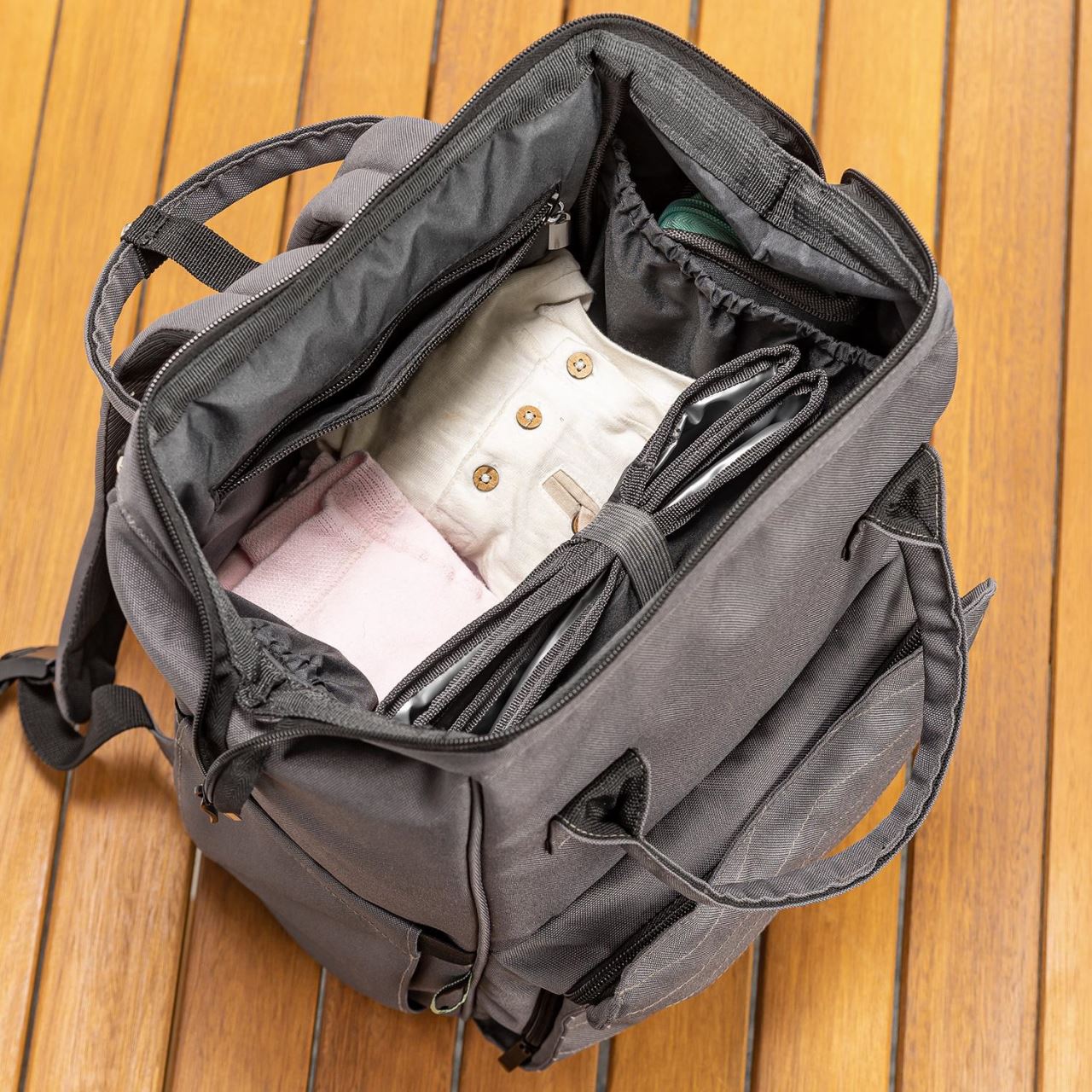 Modelul ofera un spatiu generos pentru scutece, hainute de schimb, jucarii, servetele si accesorii de hranire. Materialul impermeabil si rezistent la murdarie se curata usor, iar bretelele captusite asigura purtare confortabila. In plus, este realizat din plastic reciclat, fiind o optiune practica si mai prietenoasa cu mediul.