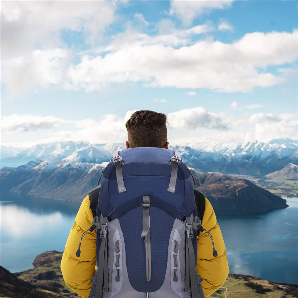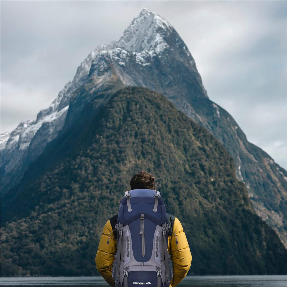 Rucsac tactic militar pentru drumetie, cu husa de ploaie, 60 litri, 25 kg, 70x40x24 cm, gri albastru Household NewTrend