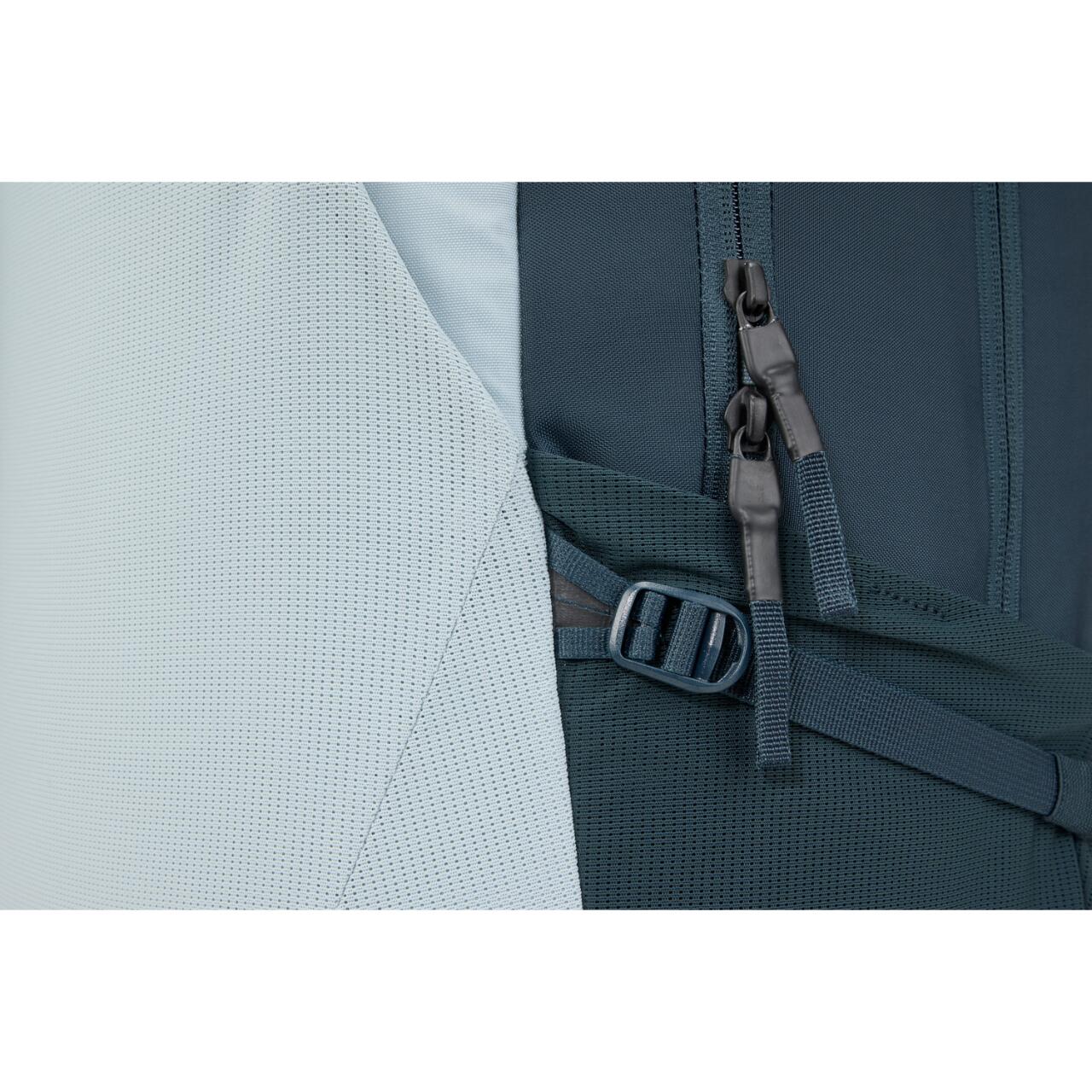 Cureaua de piept, panoul dorsal captusit cu canal de ventilatie si curelele laterale de compresie mentin greutatea echilibrata pentru un confort sporit.
