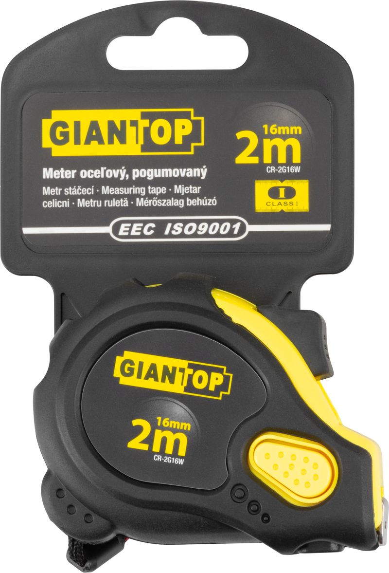 Ruletă cu auto-retragere GIANTOP 2 m, 16 mm, carcasă cauciucată cu frână