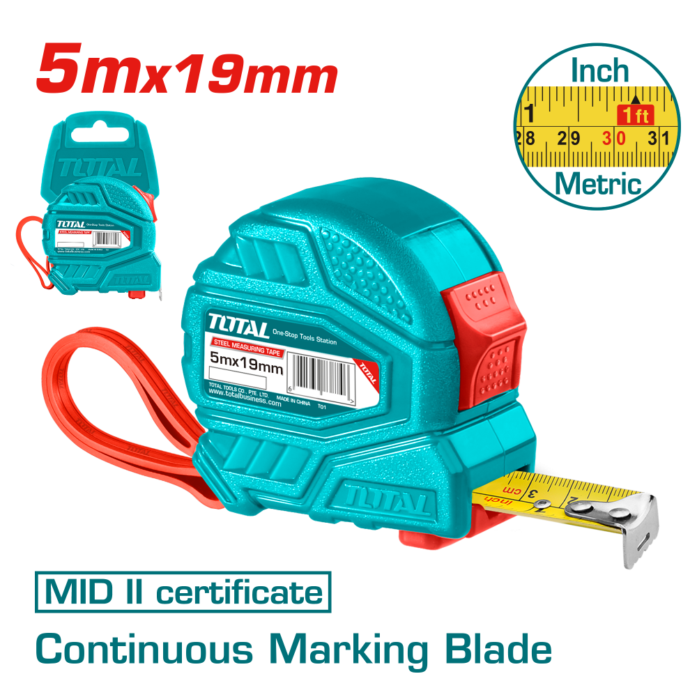 Ruletă de măsurat TOTAL 5 m x 19 mm, cu blocare și retragere rapidă
