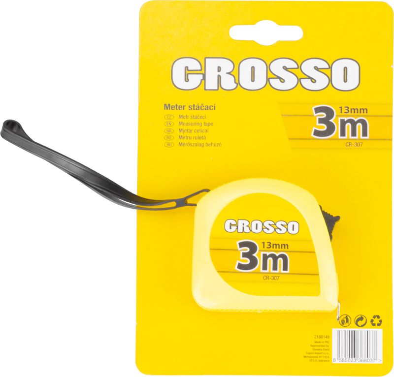 Ruleta metrică GIANT GROSSO CR-07 este un instrument de măsurare retractabil, precis și ușor de folosit, cu lungime de 3 m. Datorită construcției robuste și formatului compact, este potrivită atât pentru lucrări casnice, cât și pentru utilizare în atelier sau în diverse activități profesionale.