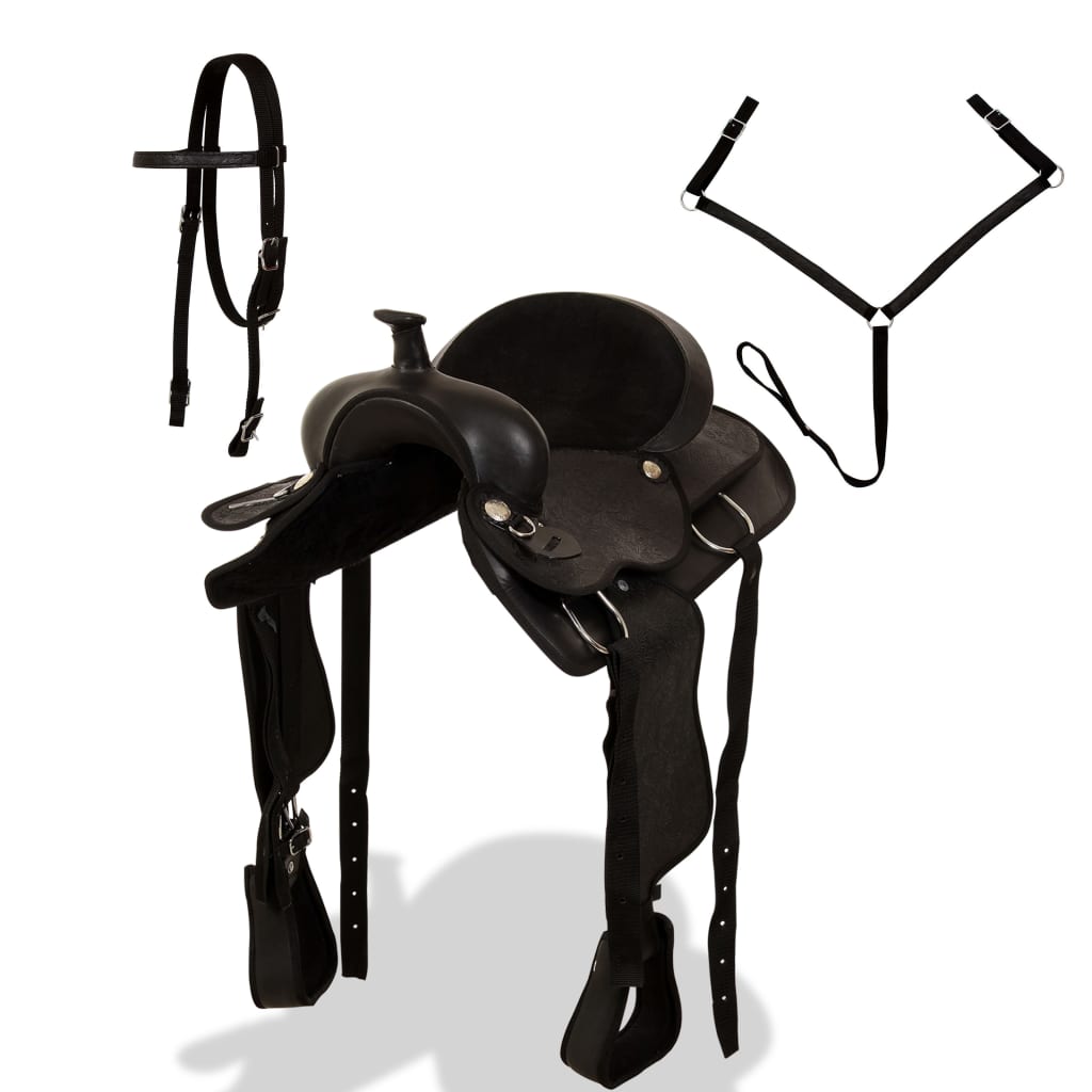 Șa Western, căpăstru & pieptar, piele naturală, 17", negru GartenMobel Dekor