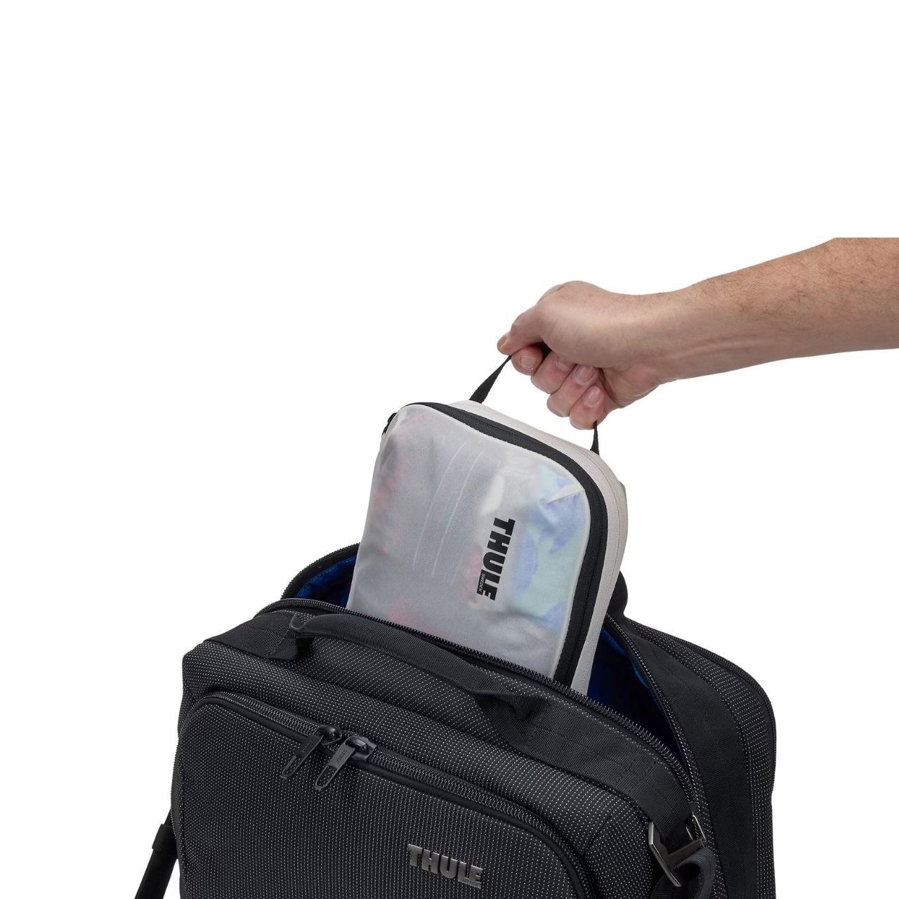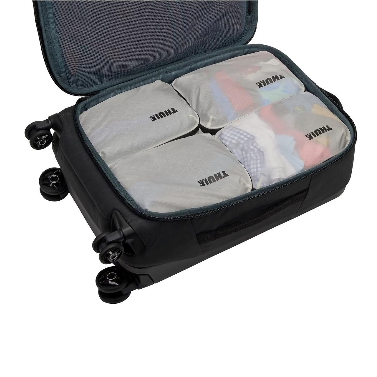 Acest packing cube Thule este potrivit pentru lenjerie, șosete, tricouri și alte articole mici. Se deschide larg pentru împachetare ușoară, iar mânerul integrat îl face simplu de transportat sau agățat în timpul deplasărilor. Construcția din nailon ripstop rezistent la apă și fermoarele premium YKK oferă durabilitate excelentă pentru utilizare frecventă.