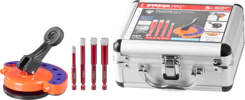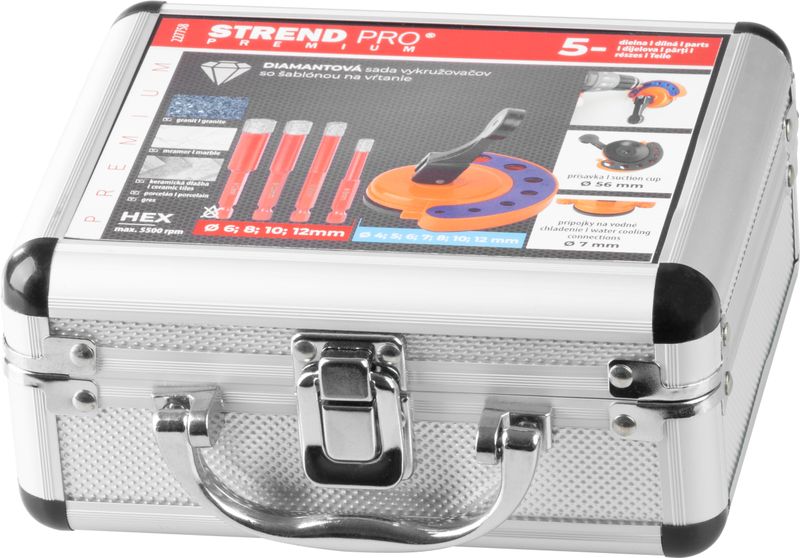 Sada vykružovačov Strend Pro Premium je ideálnym nástrojom pre profesionálne aj domáce použitie, keď potrebujetepresne vyvŕtať otvory do tvrdých materiálov.Obsahuje diamantové korunky rôznych veľkostí a šablónu na presné umiestnenie. Vďaka vodnému chladeniu je práca efektívna a bezpečná.