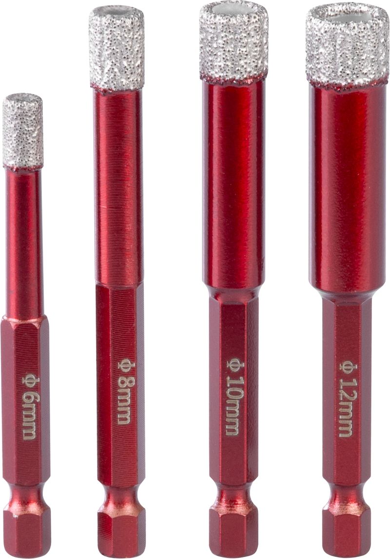 Sada vyrezávačov Strend Pro Premium, 6-8-10-12 mm, 1/4" Hex, diamant, korunky, professional, so šablónou na vŕtanie otvorov