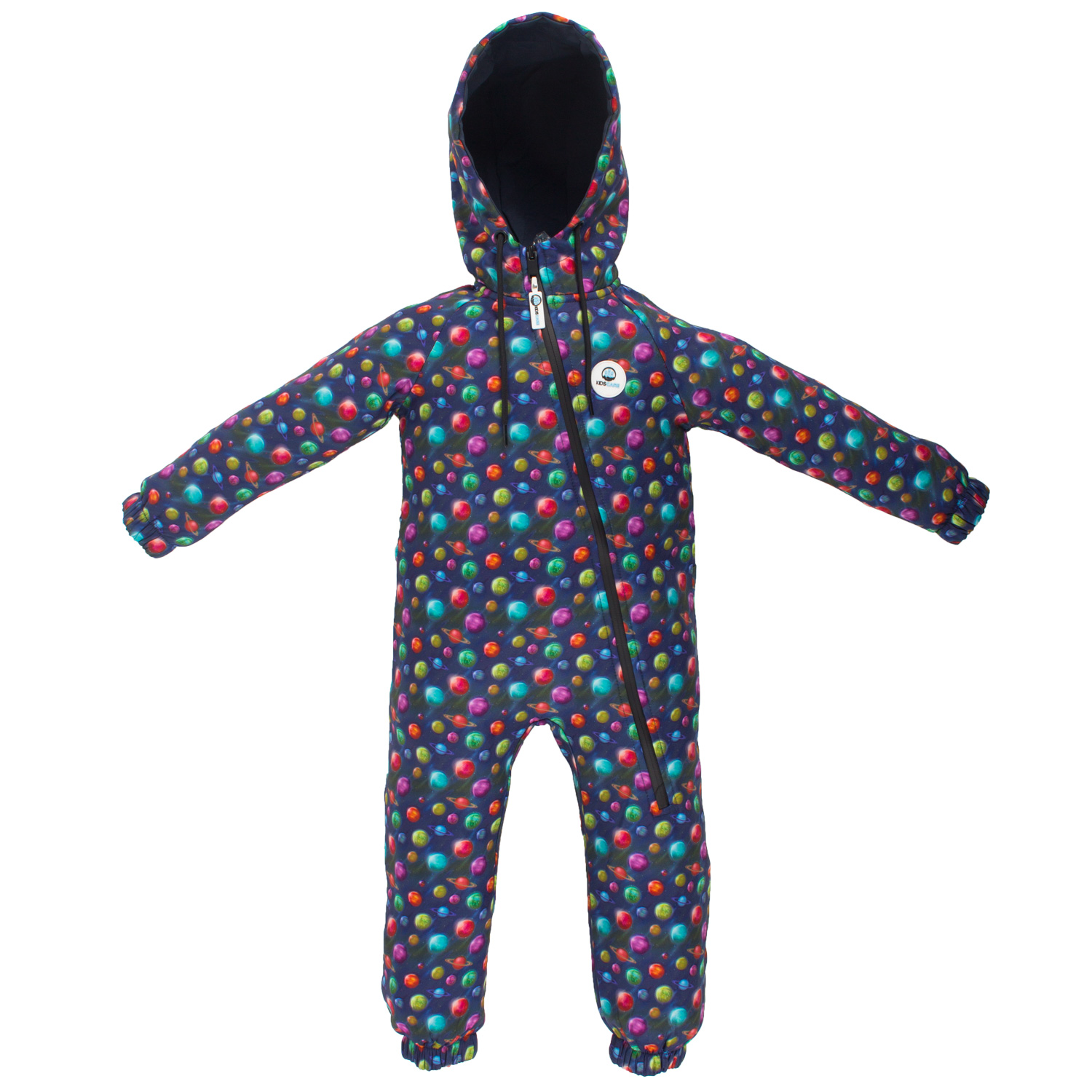 Salopeta impermeabila pentru copii Kidscare, cu protectie la vant si apa cu imprimeu Planete - marime 86