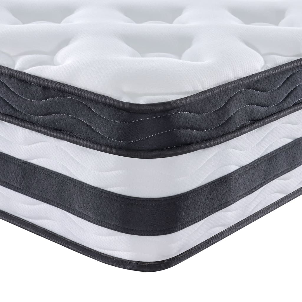 - Suport individual: Fiecare arc elicoidal îmbrăcat în material textil răspunde la punctele dvs. de presiune, oferind un sprijin țintit și distribuind uniform presiunea pe care o suportă coloana vertebrală.
