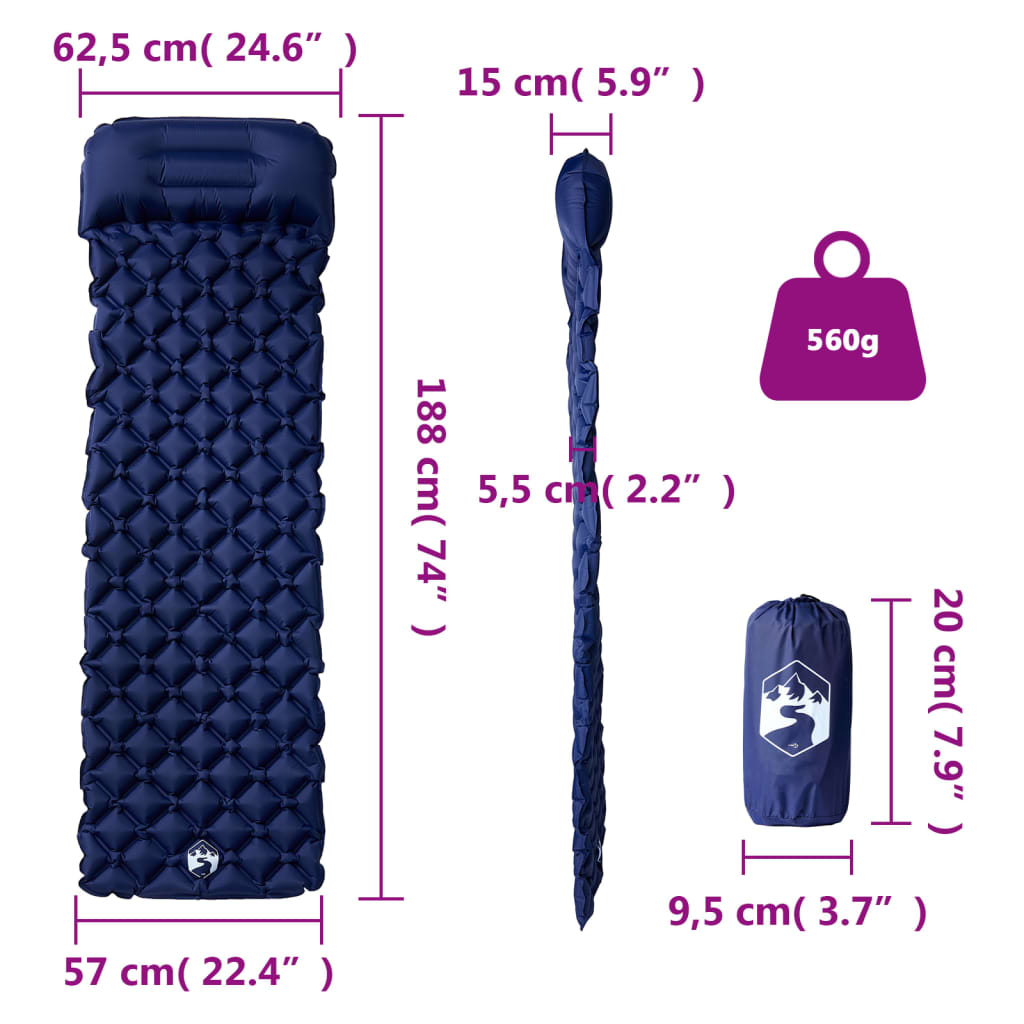 Saltea de camping gonflabilă cu pernă, 1 persoană, bleumarin GartenMobel Dekor