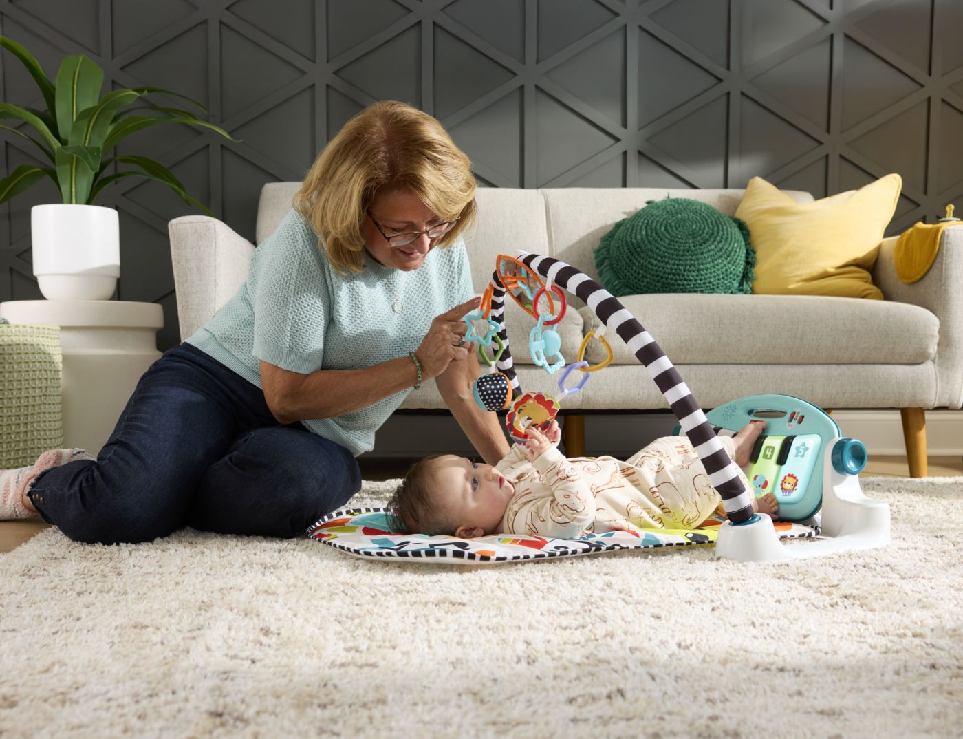 Ofera-i micutului tau un start plin de veselie cu aceasta saltea de joaca Fisher-Price, creata pentru a transforma fiecare moment de joaca intr-o experienta educativa. Pianul muzical pentru bebelusi poate fi activat cu manutele sau piciorusele, redand sunete si melodii in limba greaca, in timp ce arcada cu jucarii suspendate stimuleaza atentia, curiozitatea si coordonarea.