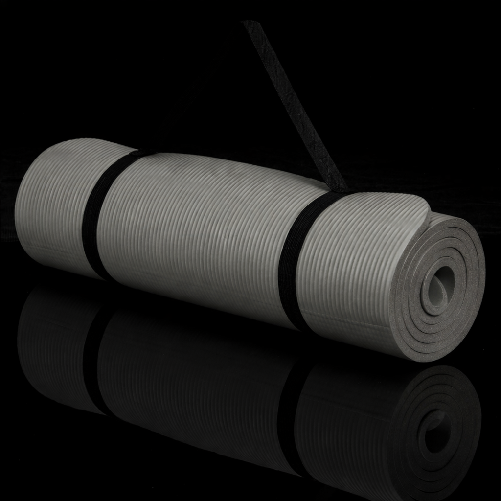 Saltea fitness antiderapanta NBR 183x61x1 cm cu curea de transport, gri