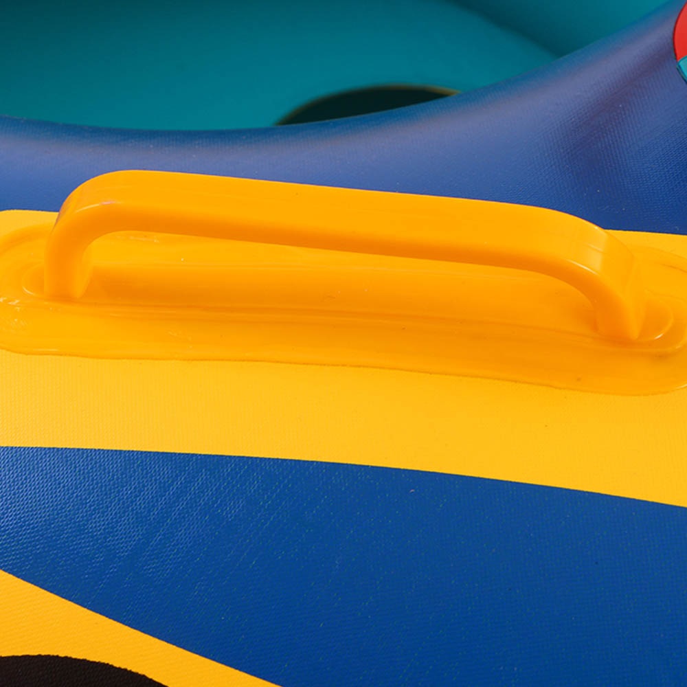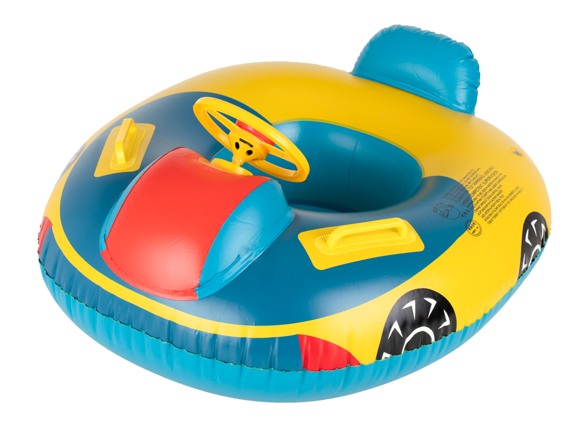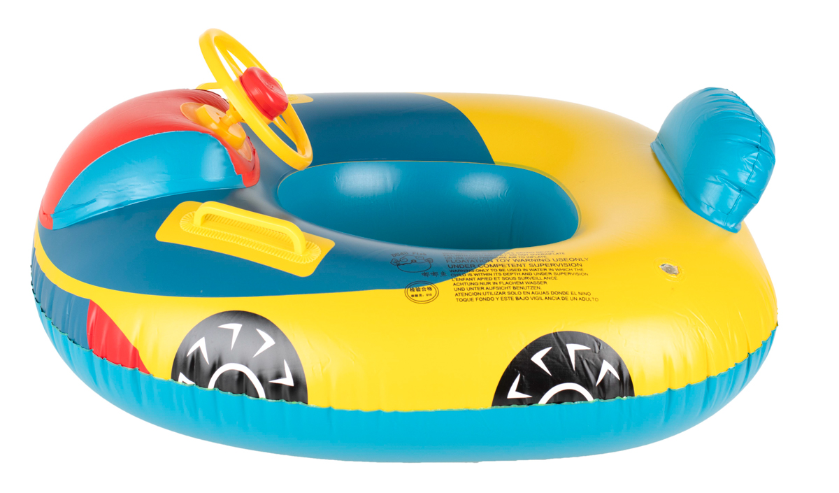 O barcă gonflabilă pentru copii în formă de mașină, realizată din PVC de înaltă calitate, care garantează durabilitatea.