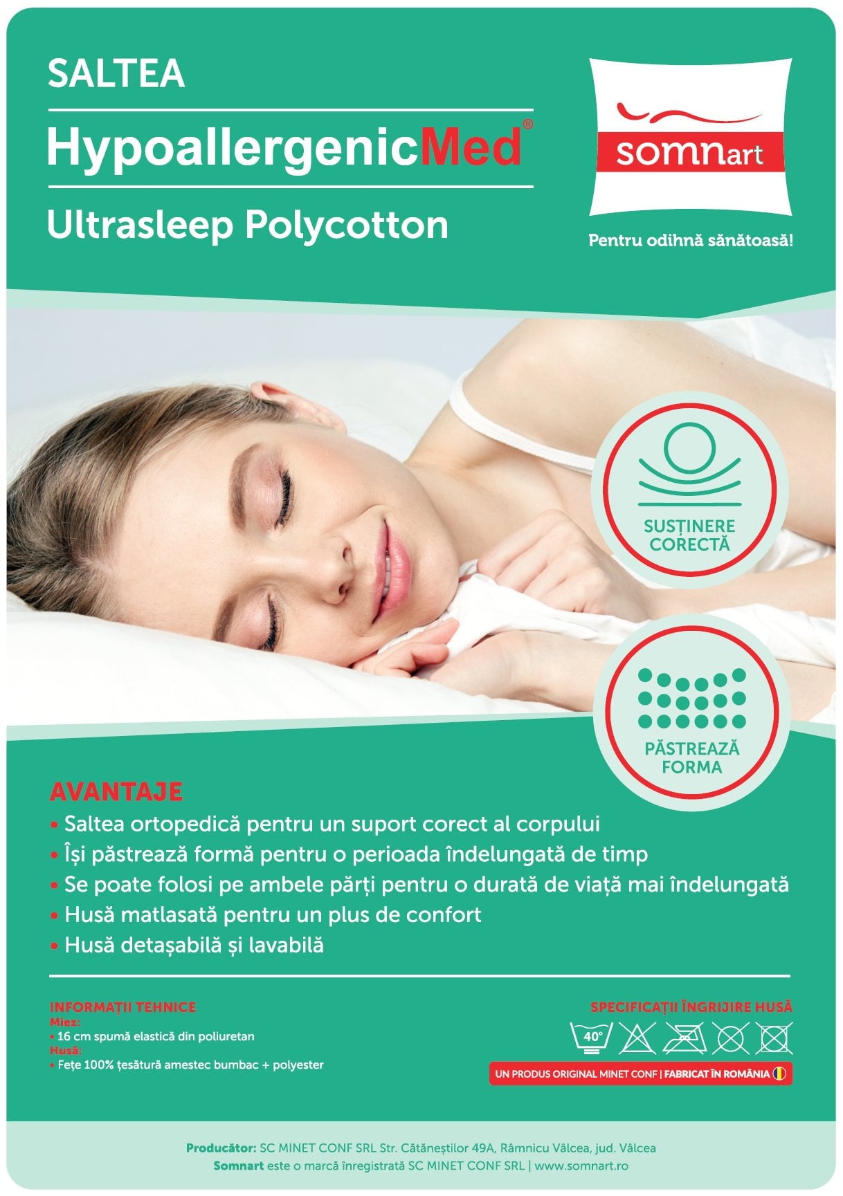 - Caracteristici: ortopedică, hipoalergenică, reversibilă